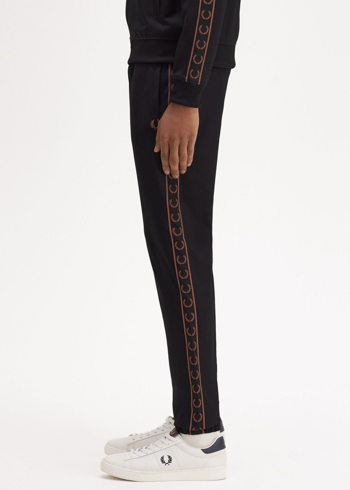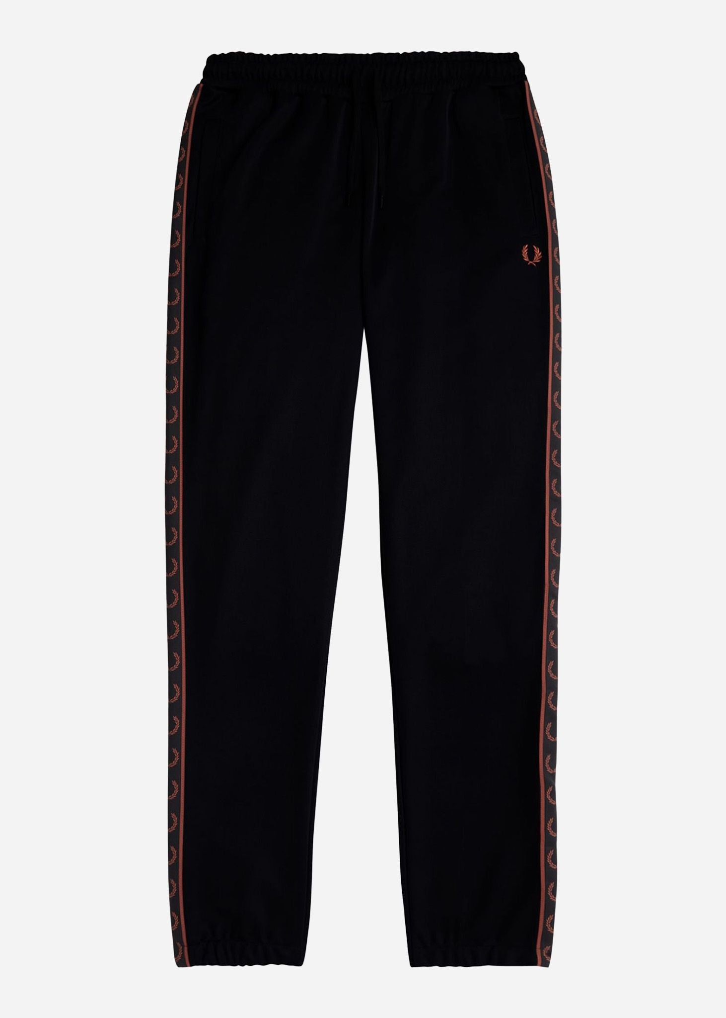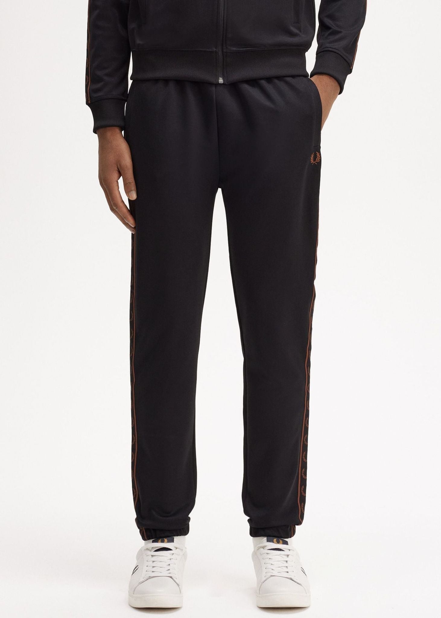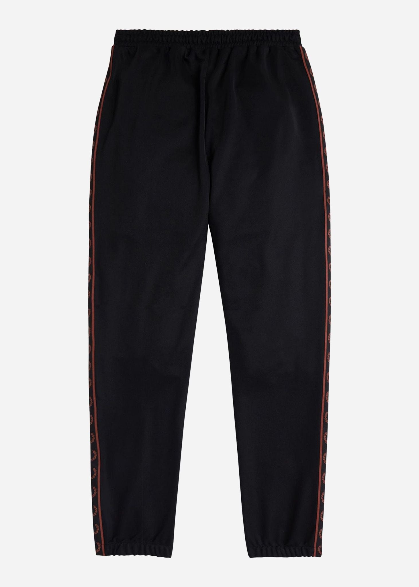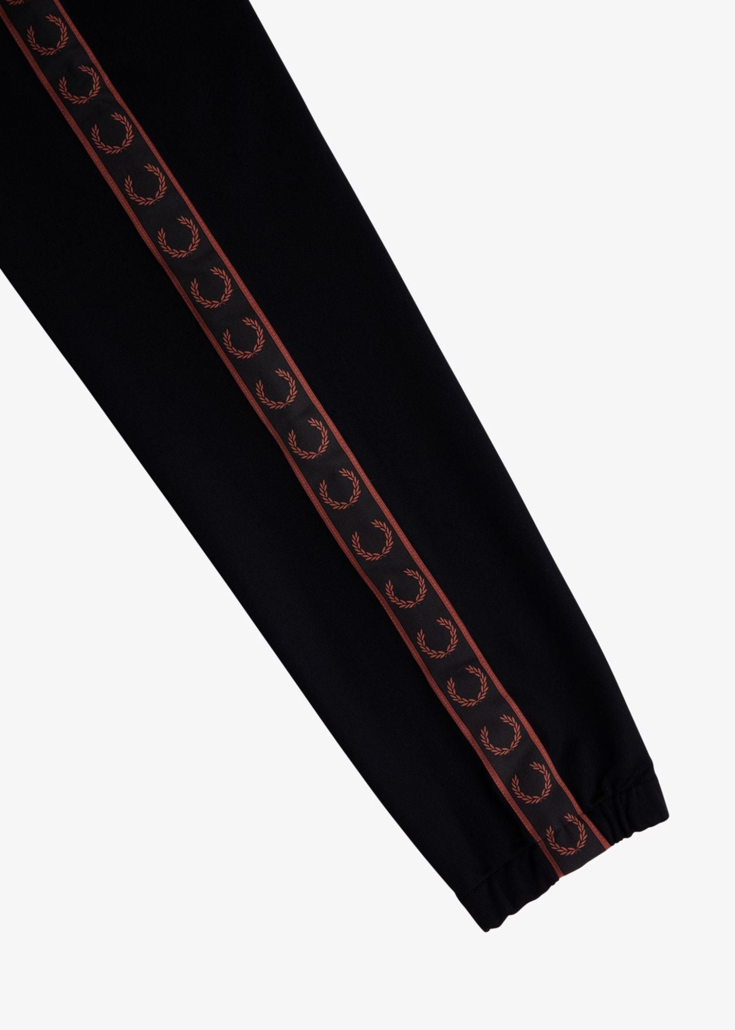 A jersey training pant in a blend of cotton and recycled polyester, featuring Fred Perry's signature sporty piping on the sides.