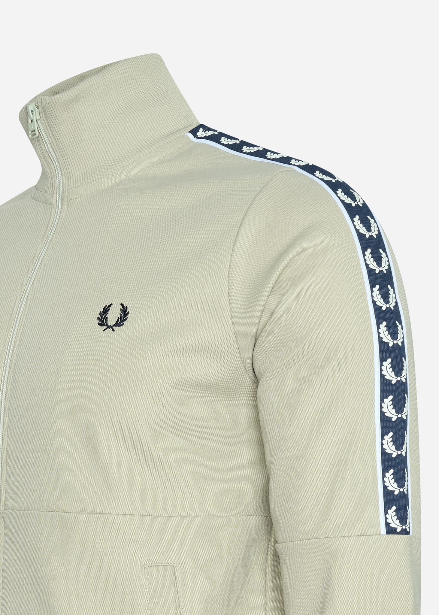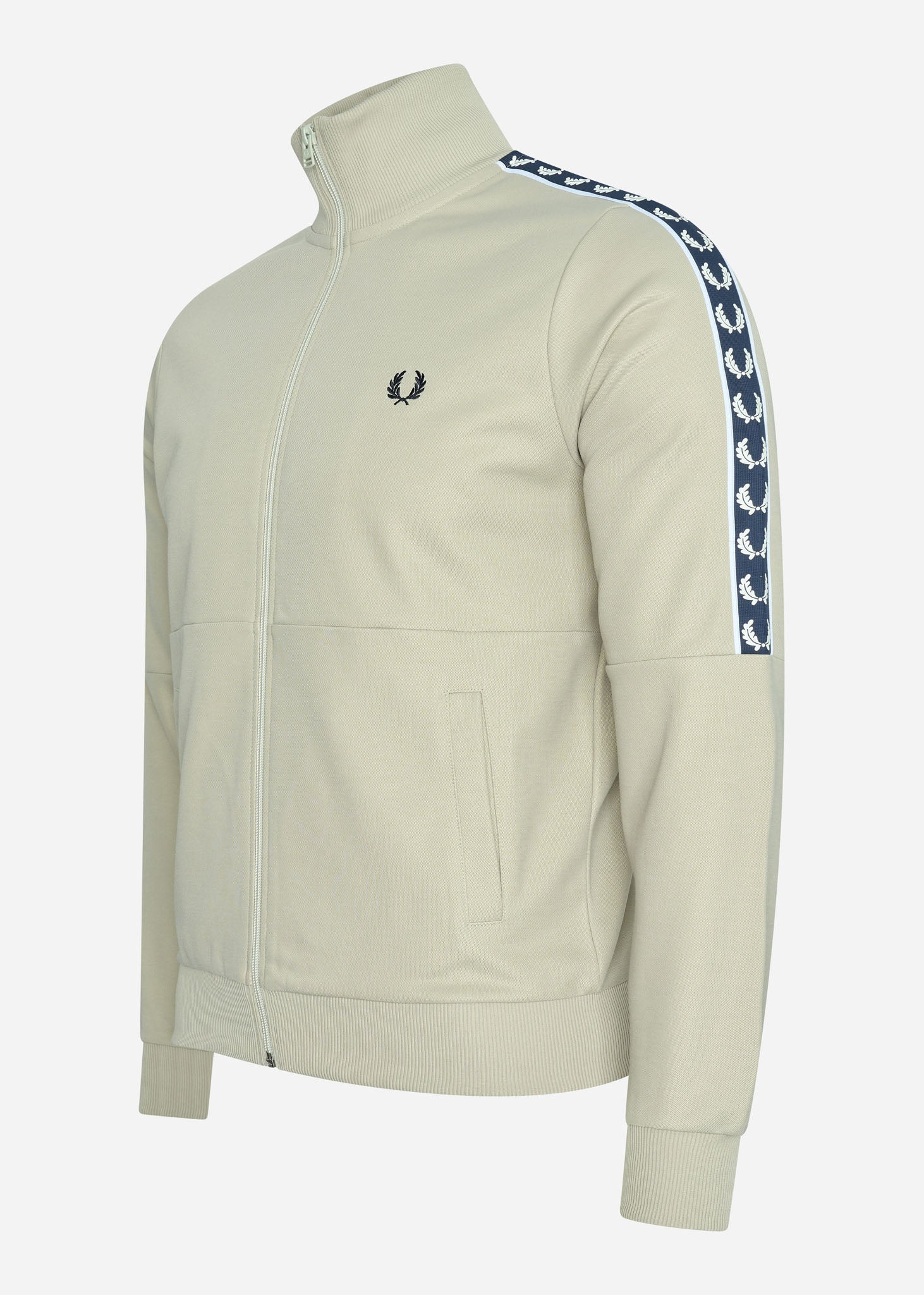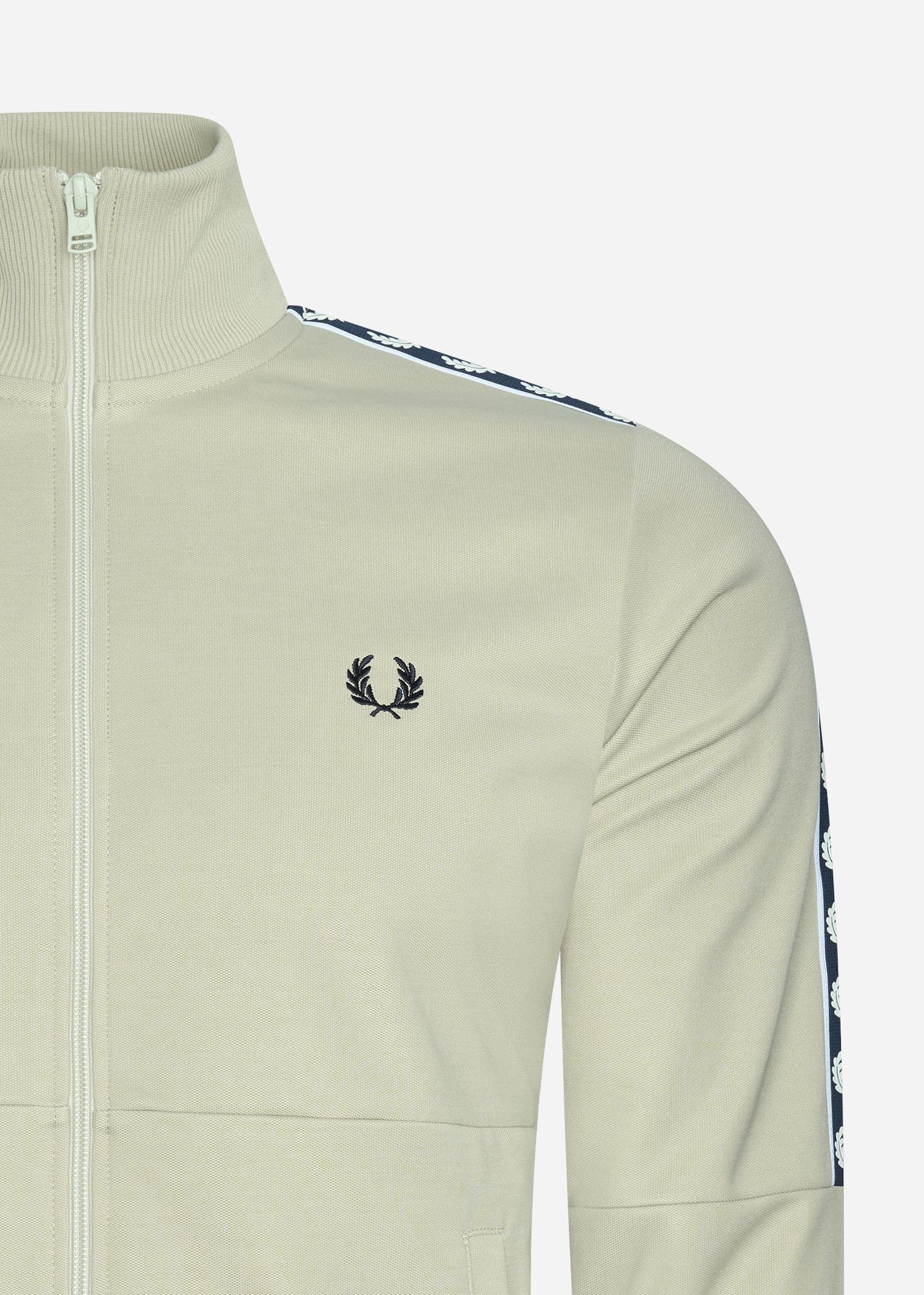 The Panelled Taped Track Jacket is an alternative version of the classic Fred Perry training jacket. The brand details on the shoulders and upper arms are the most eye-catching features of this sporty vest. In addition, this beautiful garment features a high collar, ribbed cuffs and hem and two pockets. Of course, you will find the Fred Perry logo on the left chest.
