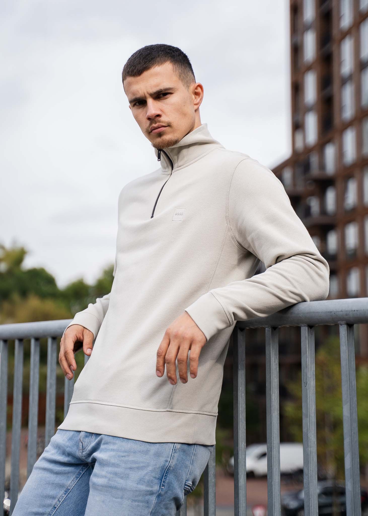The Hugo Boss Zetrust Sweater is a comfortable essential with a modern look. Crafted from soft cotton, it features a short zip closure at the neck and a stand-up collar for a clean finish. The regular fit makes it ideal for everyday wear.