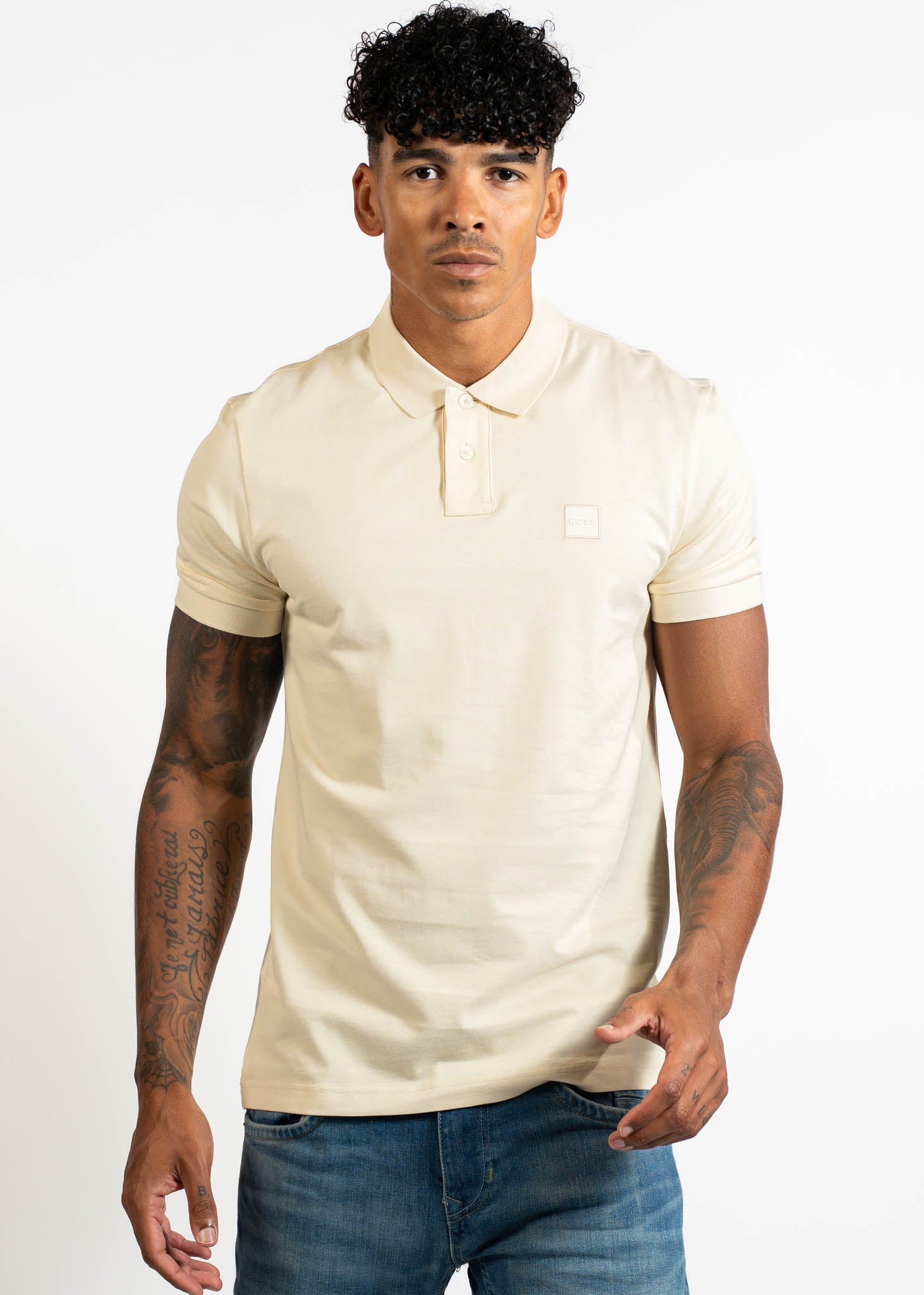 The Passenger Polo by Hugo Boss is a slim-fit polo shirt made of stretch cotton with a logo patch. The shirt has a sporty look with a short placket and flat-knit collar and cuffs.