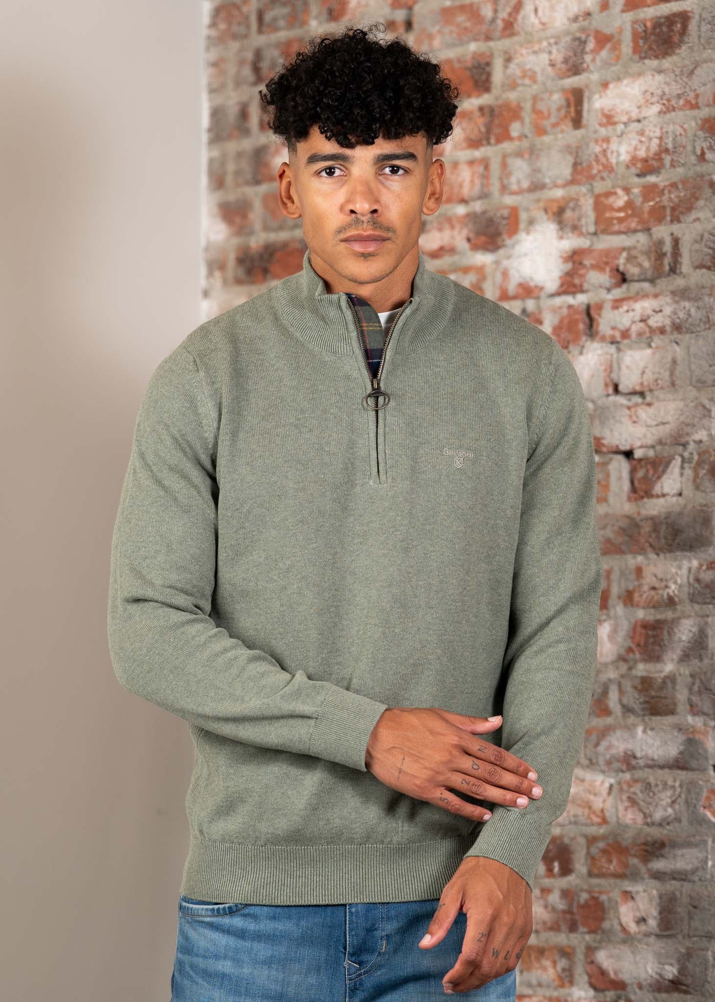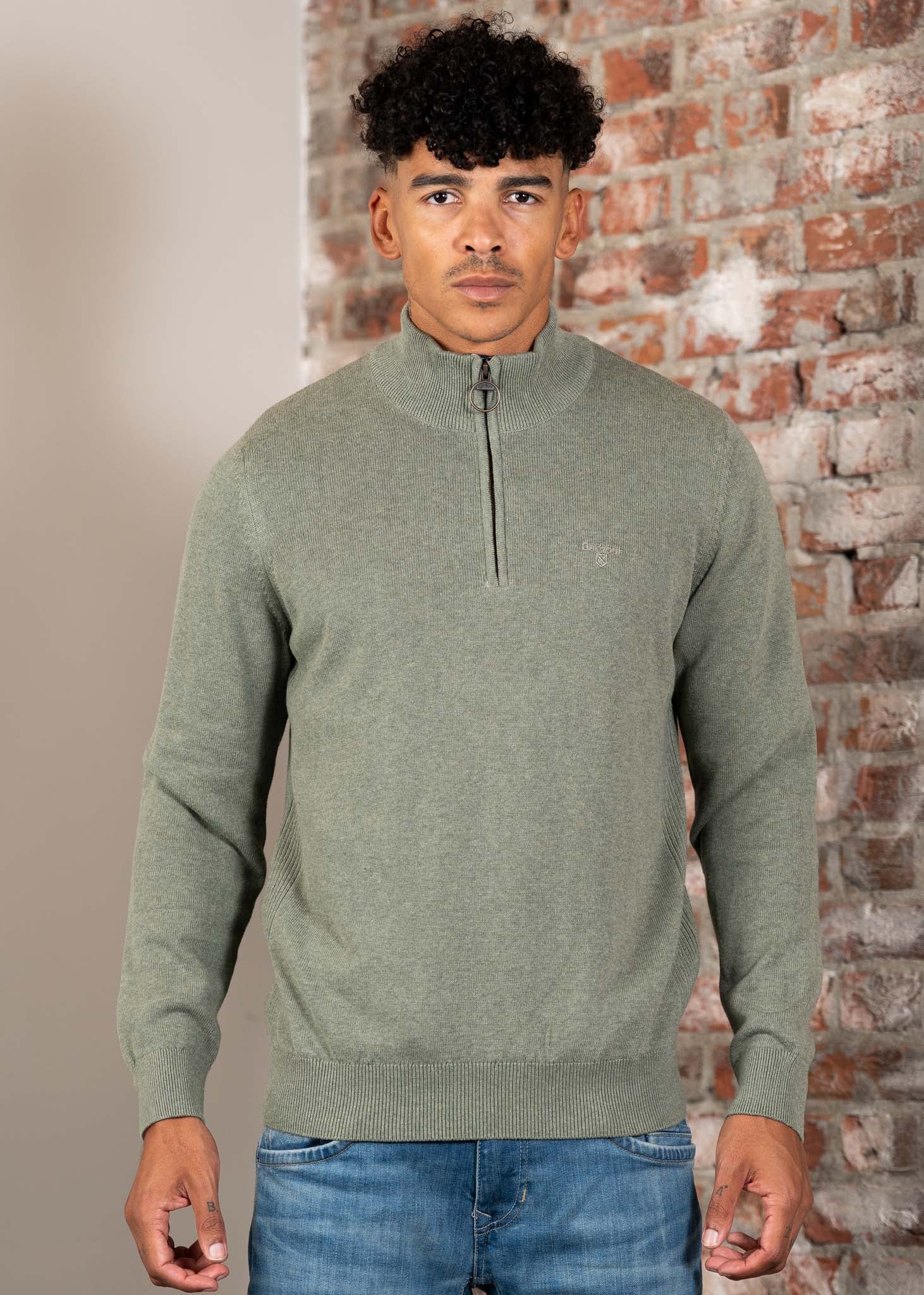 Barbour Truien Cotton half zip knitted jumper - thyme