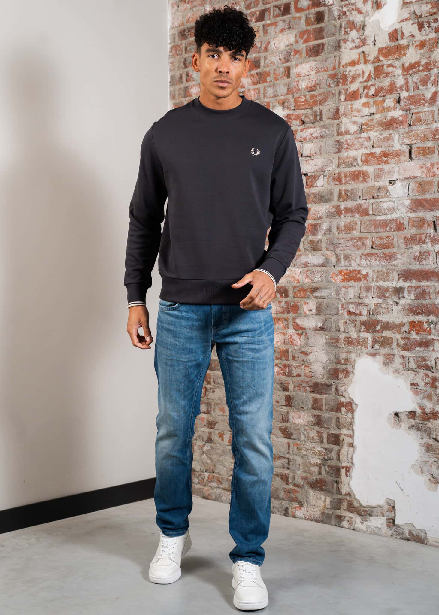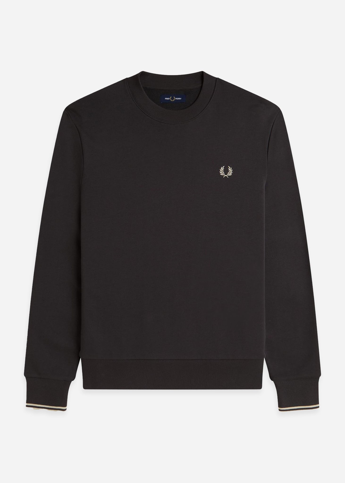 Classic crewneck sweater in a loopback cotton blend, with a comfortable regular fit. Finished with ribbed cuffs and Fred Perry's signature twin tipping on the cuffs.