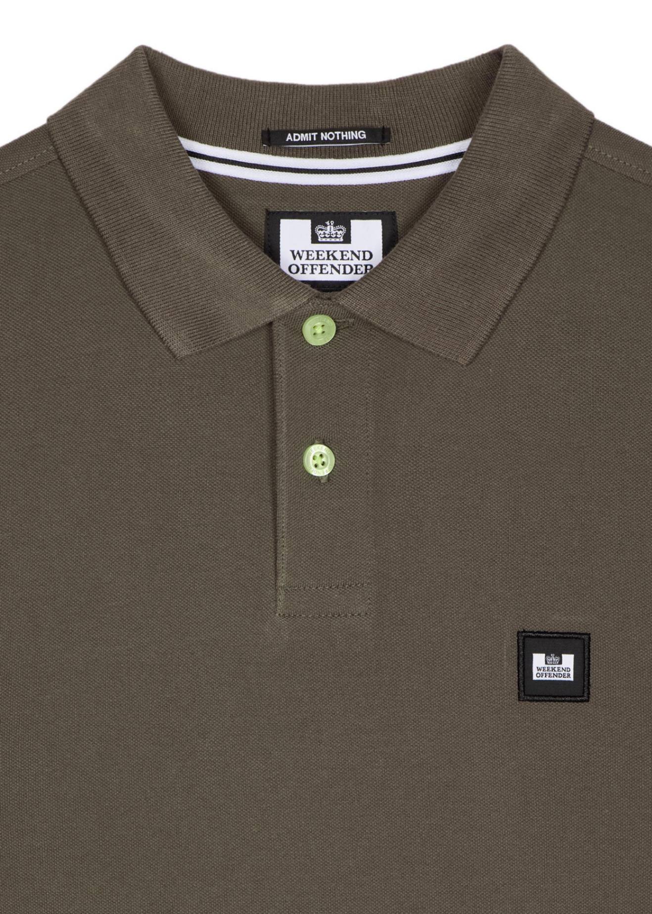 This Weekend Offender polo is crafted from ultra-fine knitted piqué made from 100% cotton, ensuring breathability and comfort. This iconic polo shirt features a knitted ribbed collar and cuffs, and is finished with contrasting WWI-engraved buttons on the placket and a subtle Weekend Offender badge on the chest.