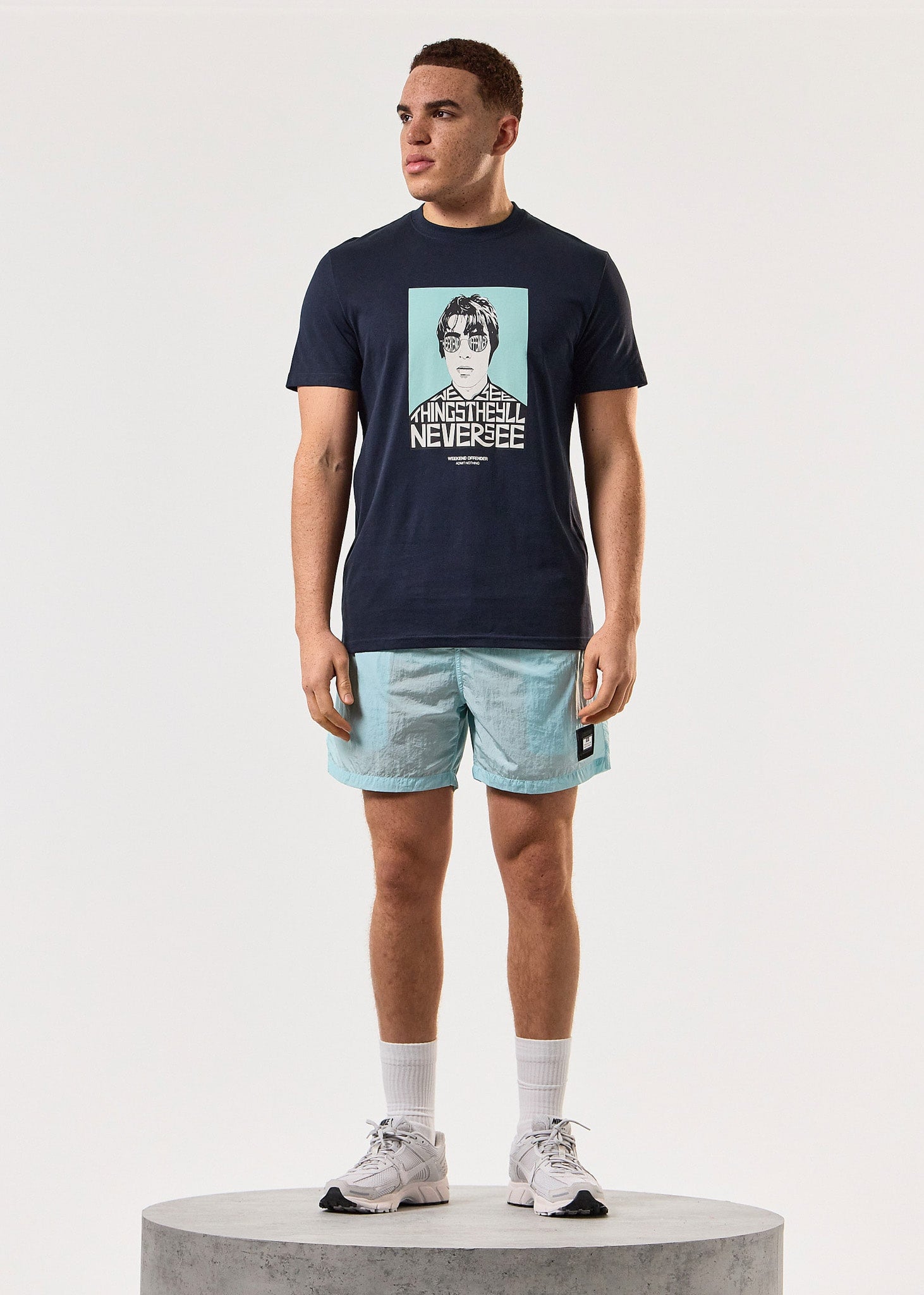 The Weekend Offender Forever Graphic Tee is the perfect way to show your love for Oasis and their iconic song "Live Forever." Featuring the powerful lyrics "We see things they'll never see" across the chest, this tee makes a bold statement for any music lover.