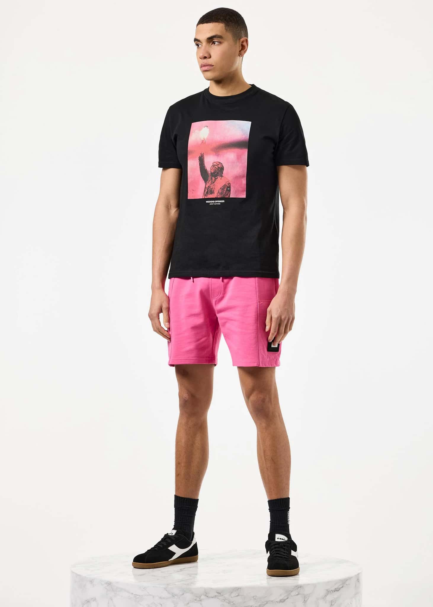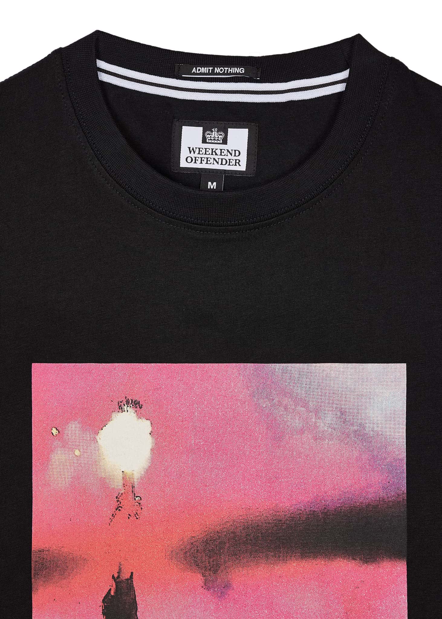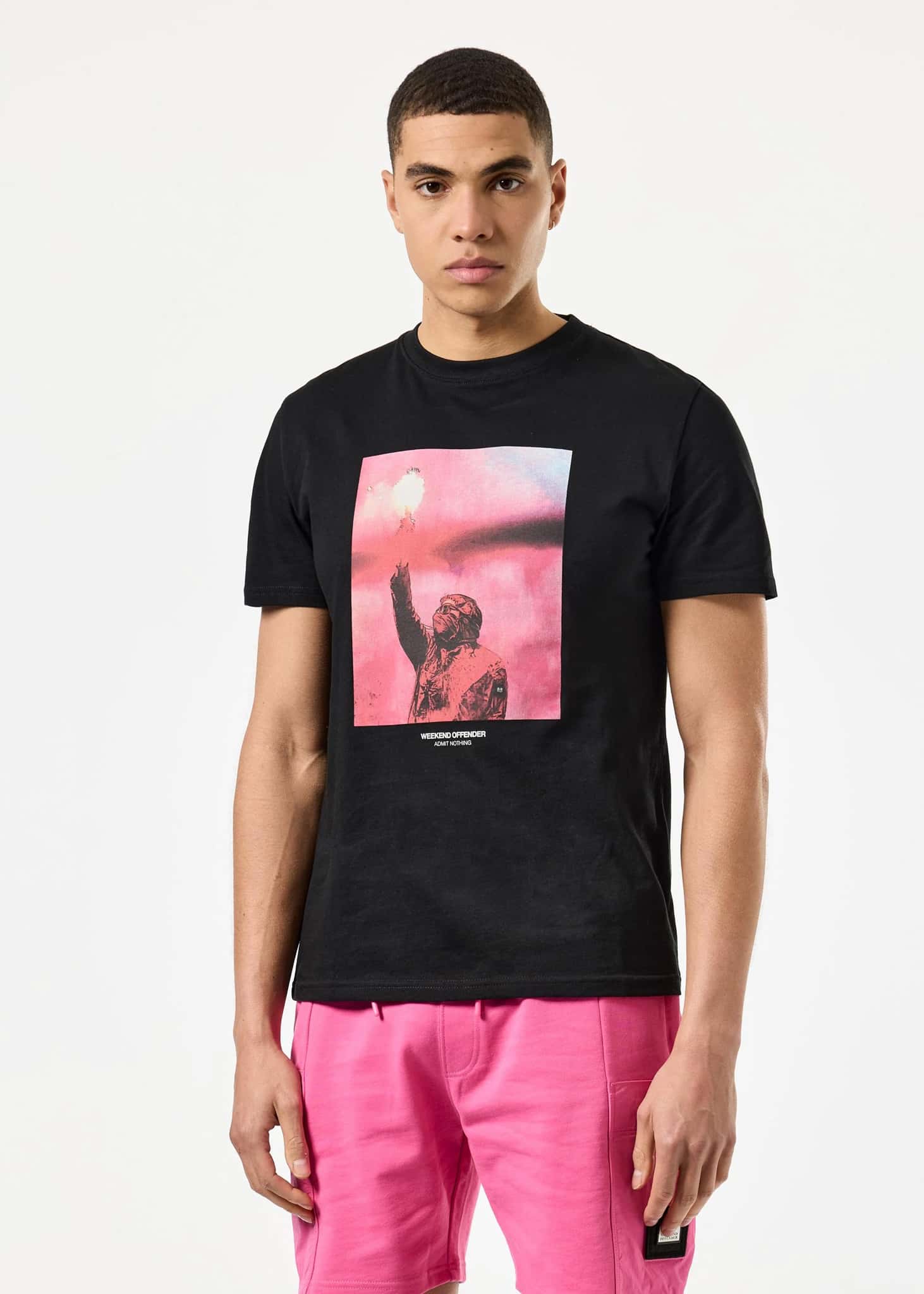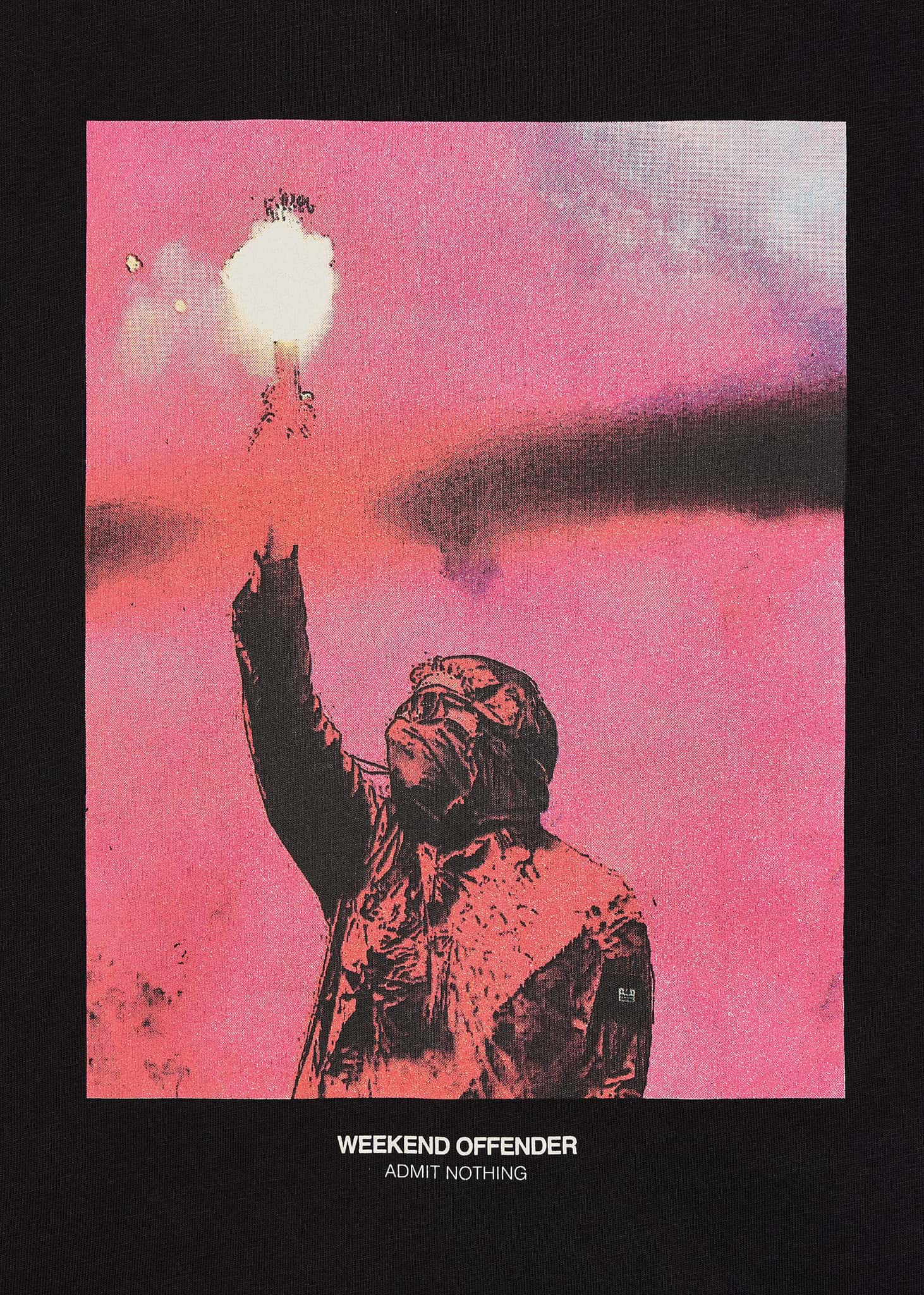 Graphic T-shirt with an abstract print of a football fan holding a torch. Made of soft cotton with a comfortable fit.