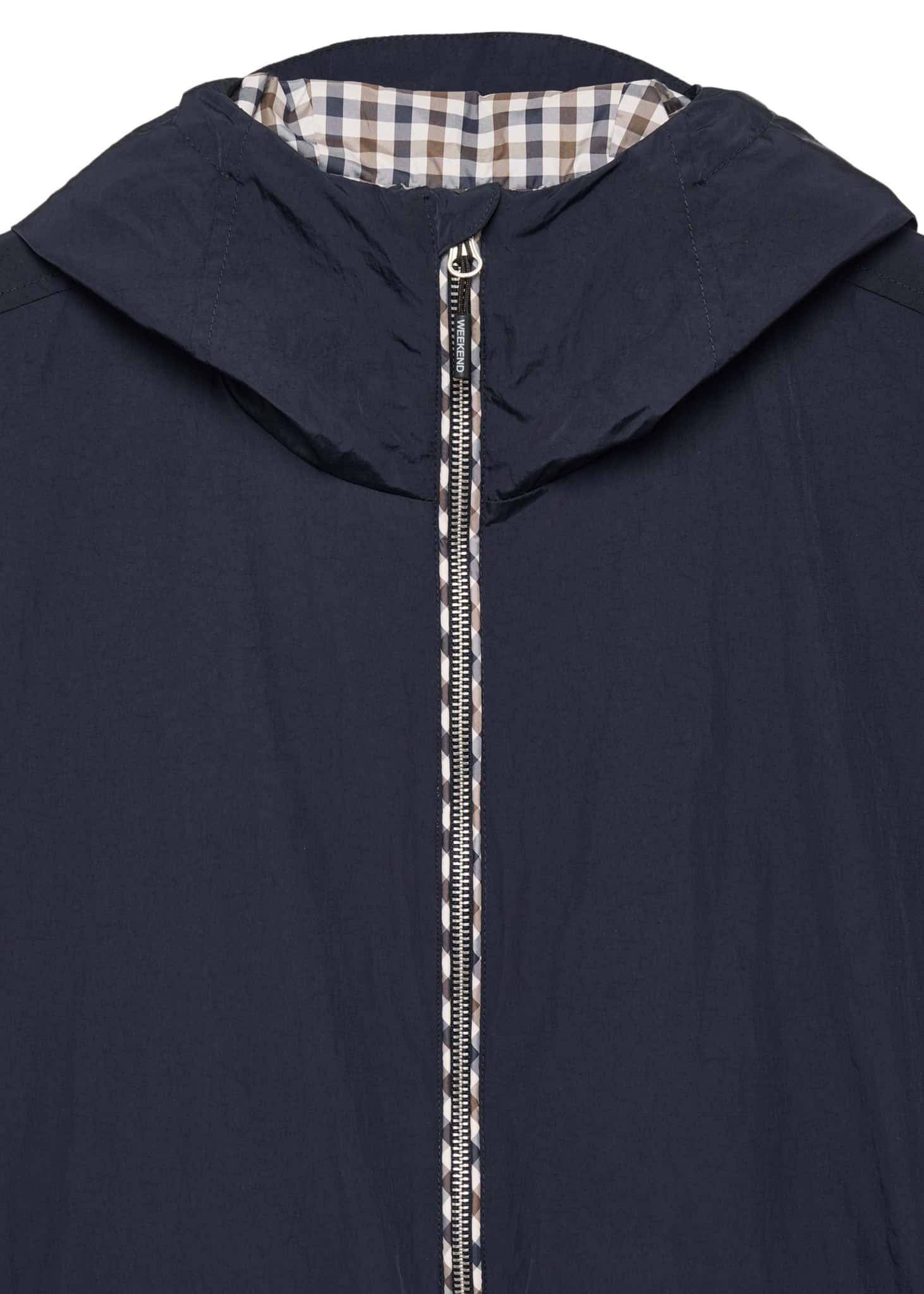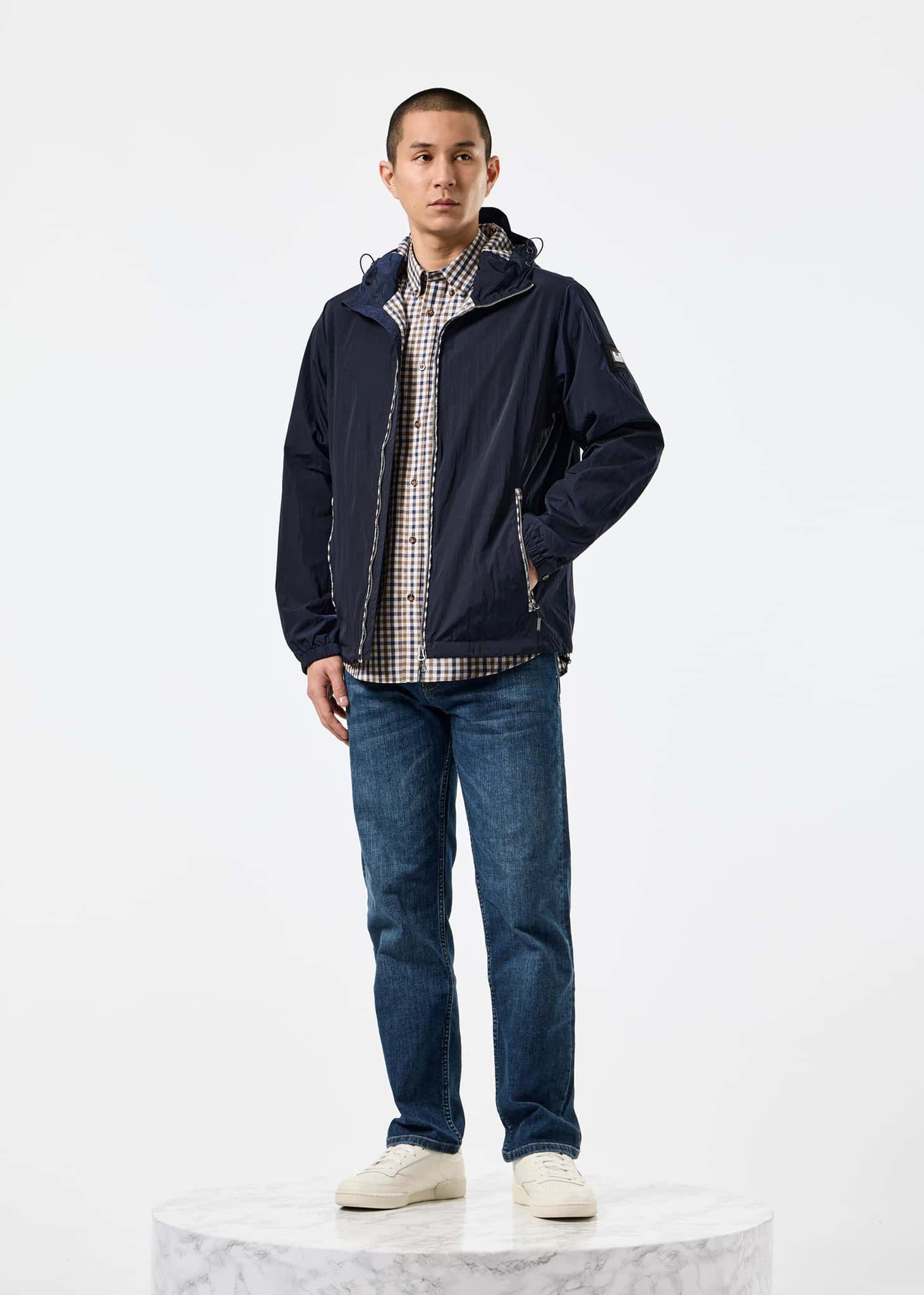 This jacket is constructed from a lightweight, high-density, woven 100% nylon parachute fabric with a light reflective misty finish. It is treated with an additional DWR (Durable Water Repellent) coating for extra protection against the rain.