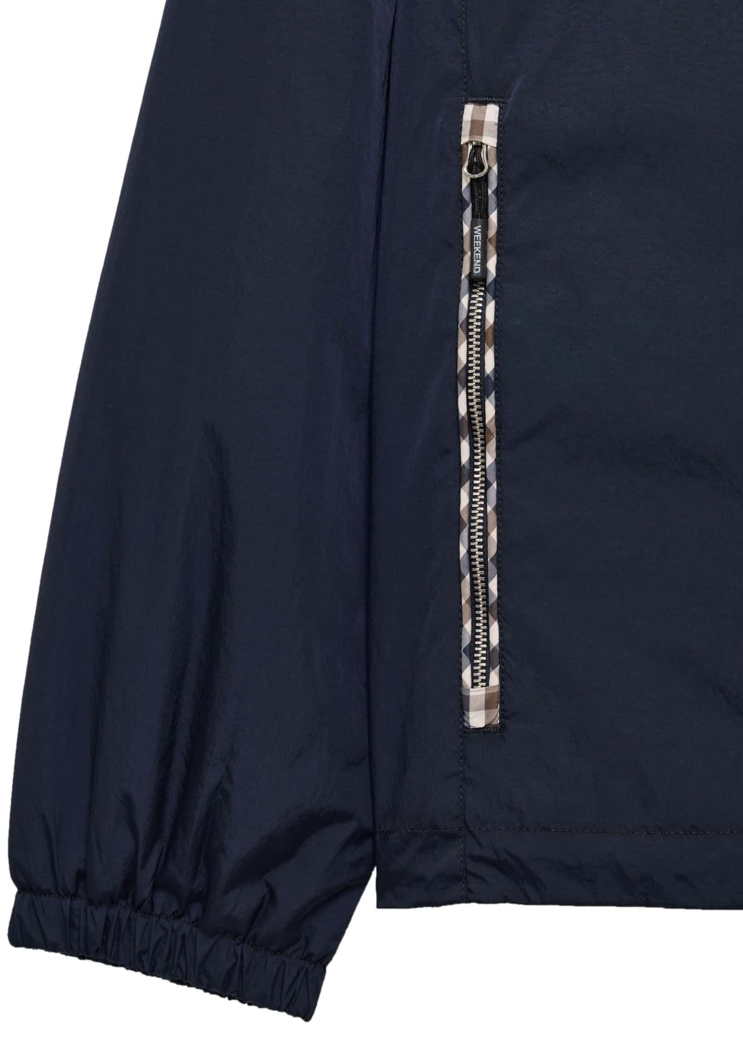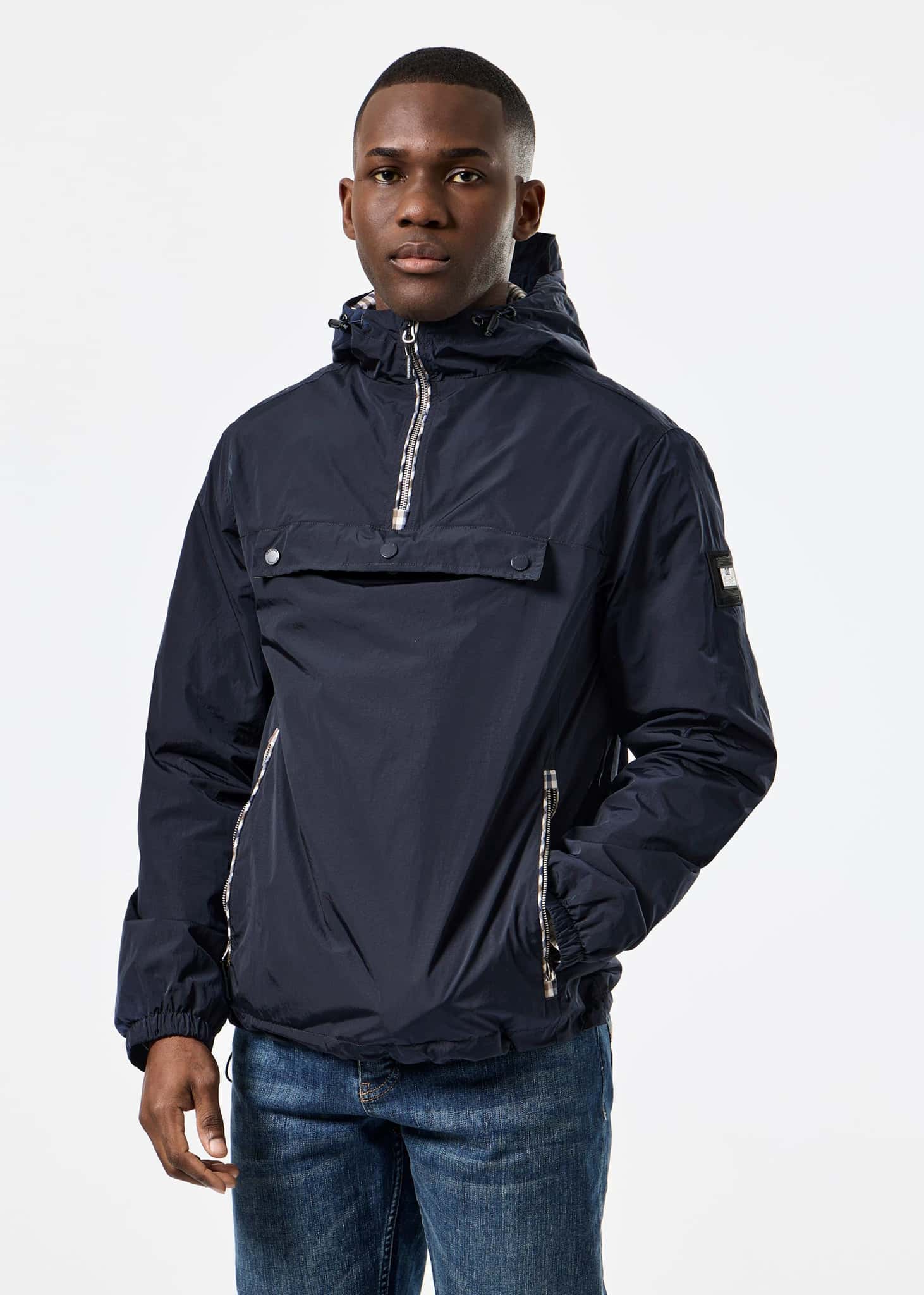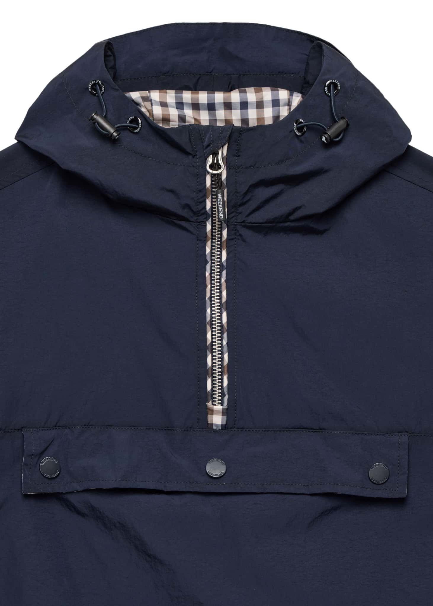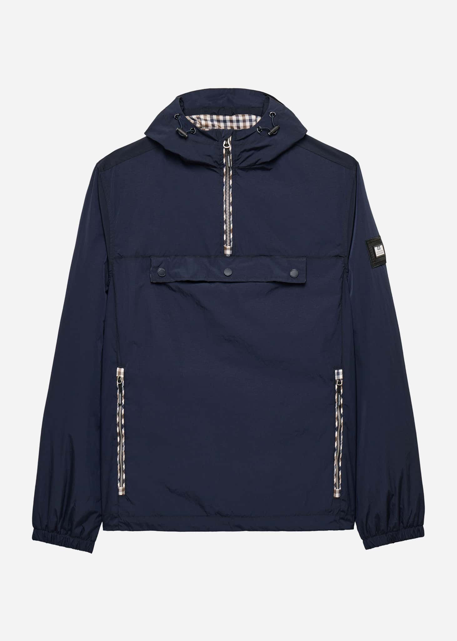 This statement overhead jacket is made from 100% polyester, featuring the iconic 3-tone fine weave mid house check. The use of lightweight, high-density 100% nylon parachute fabric with a light reflective surface provides both style and functionality. The jacket is treated with an additional DWR (Durable Water Repellent) coating for extra protection against the elements.