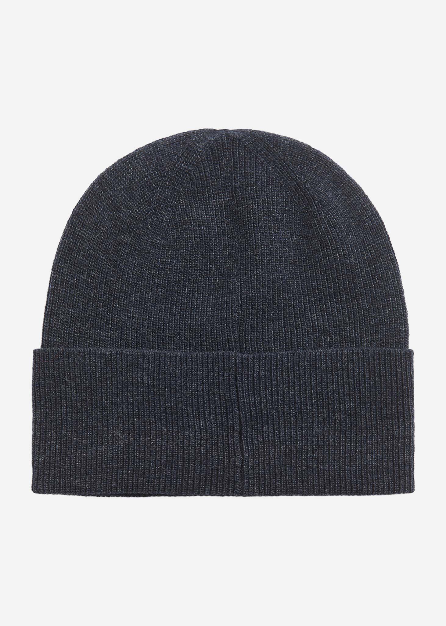 Lambswool blend ribbed beanie - dark navy marl