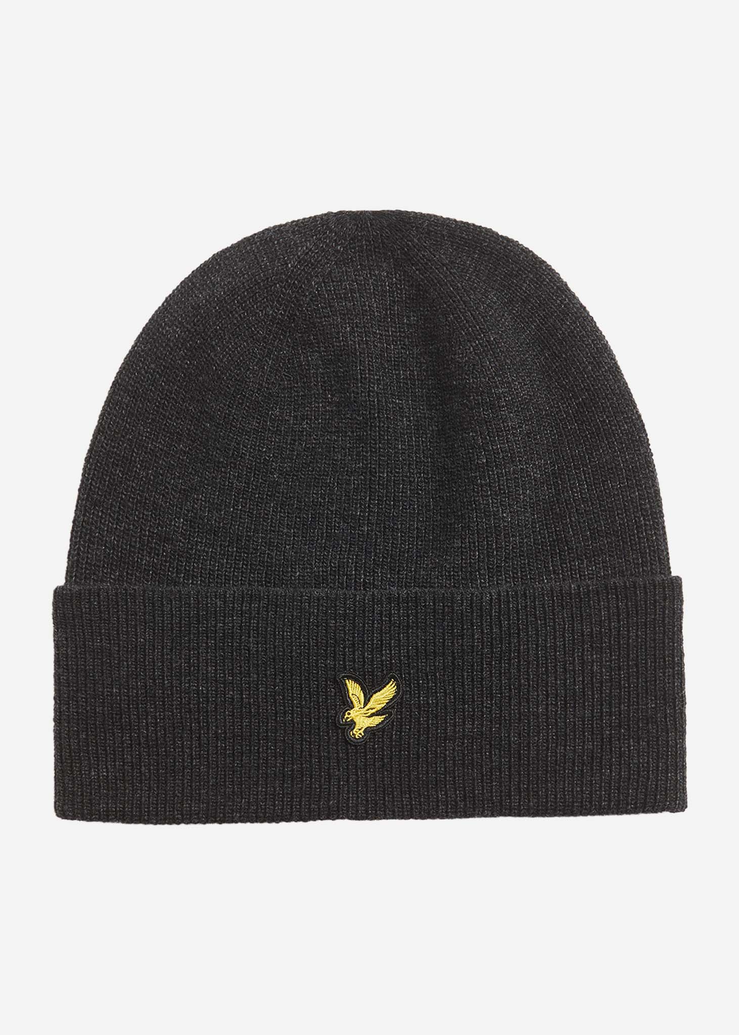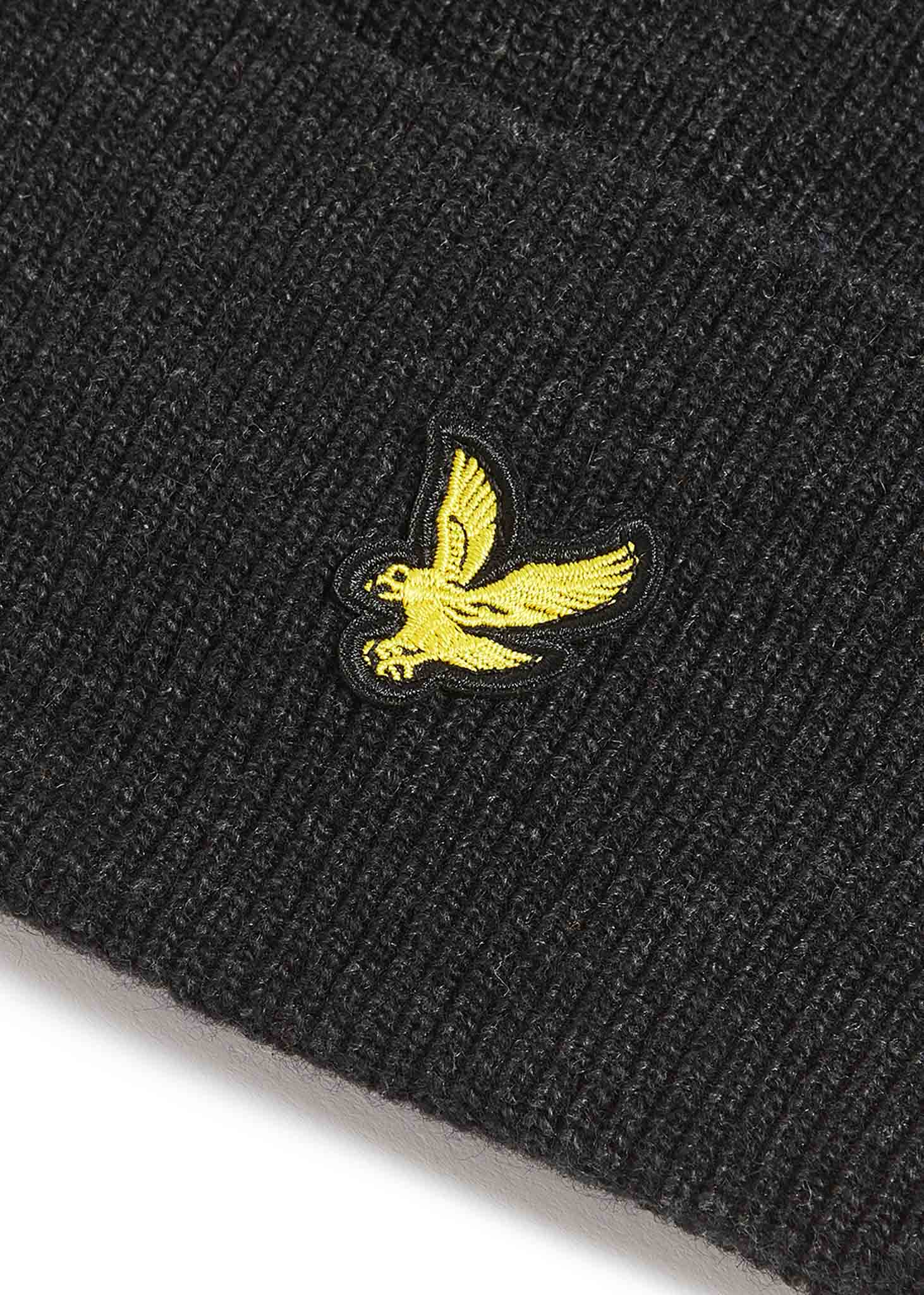 Lyle & Scott Mutsen Lambswool blend ribbed beanie - jet black marl