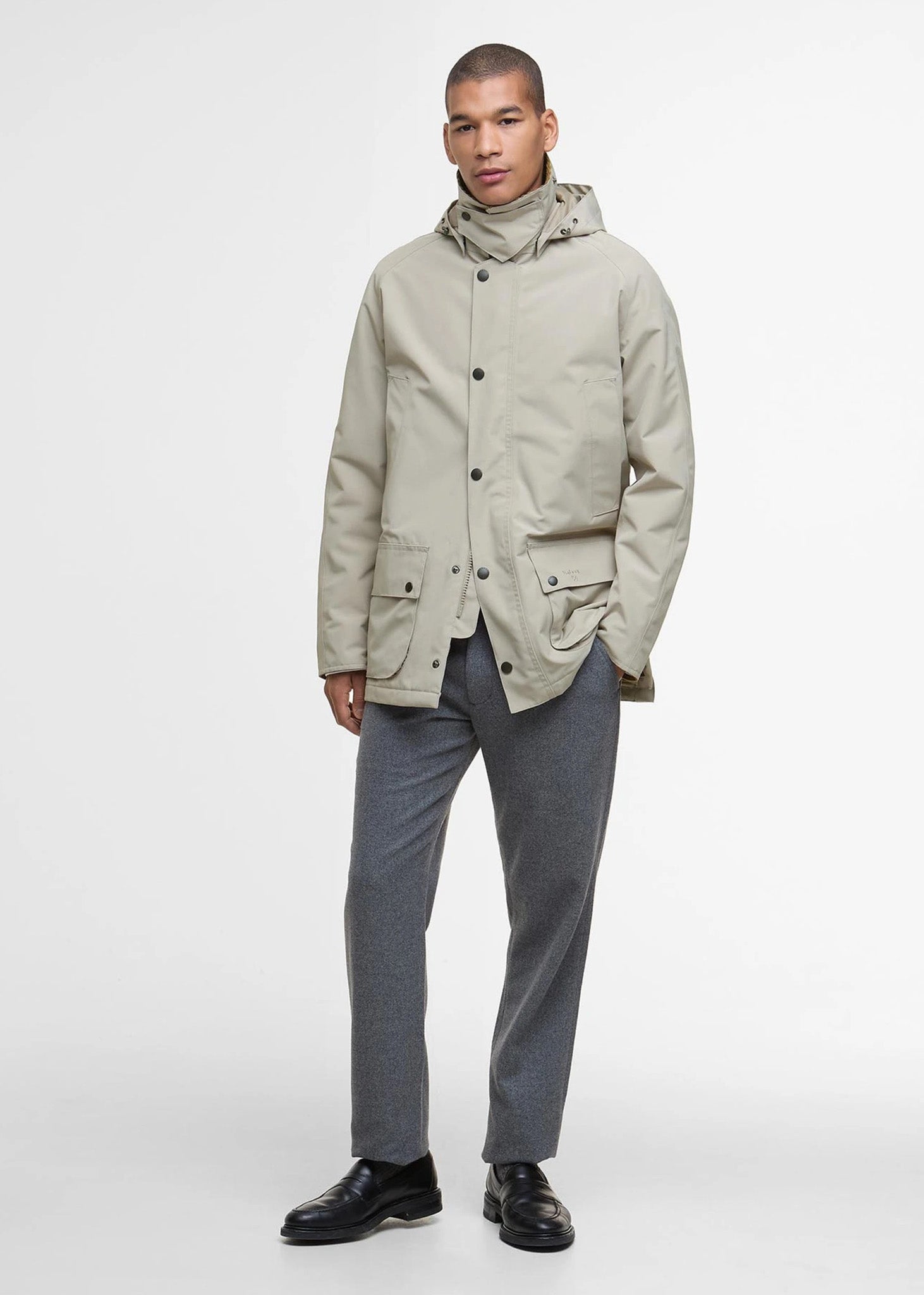 The Barbour Winter Ashby Jacket is a waterproof jacket that combines warmth and functionality. With a quilted lining, detachable hood, and practical pockets, it's a versatile piece for the colder months. The subtle tartan detail and Barbour embroidery provide a distinctive finish.