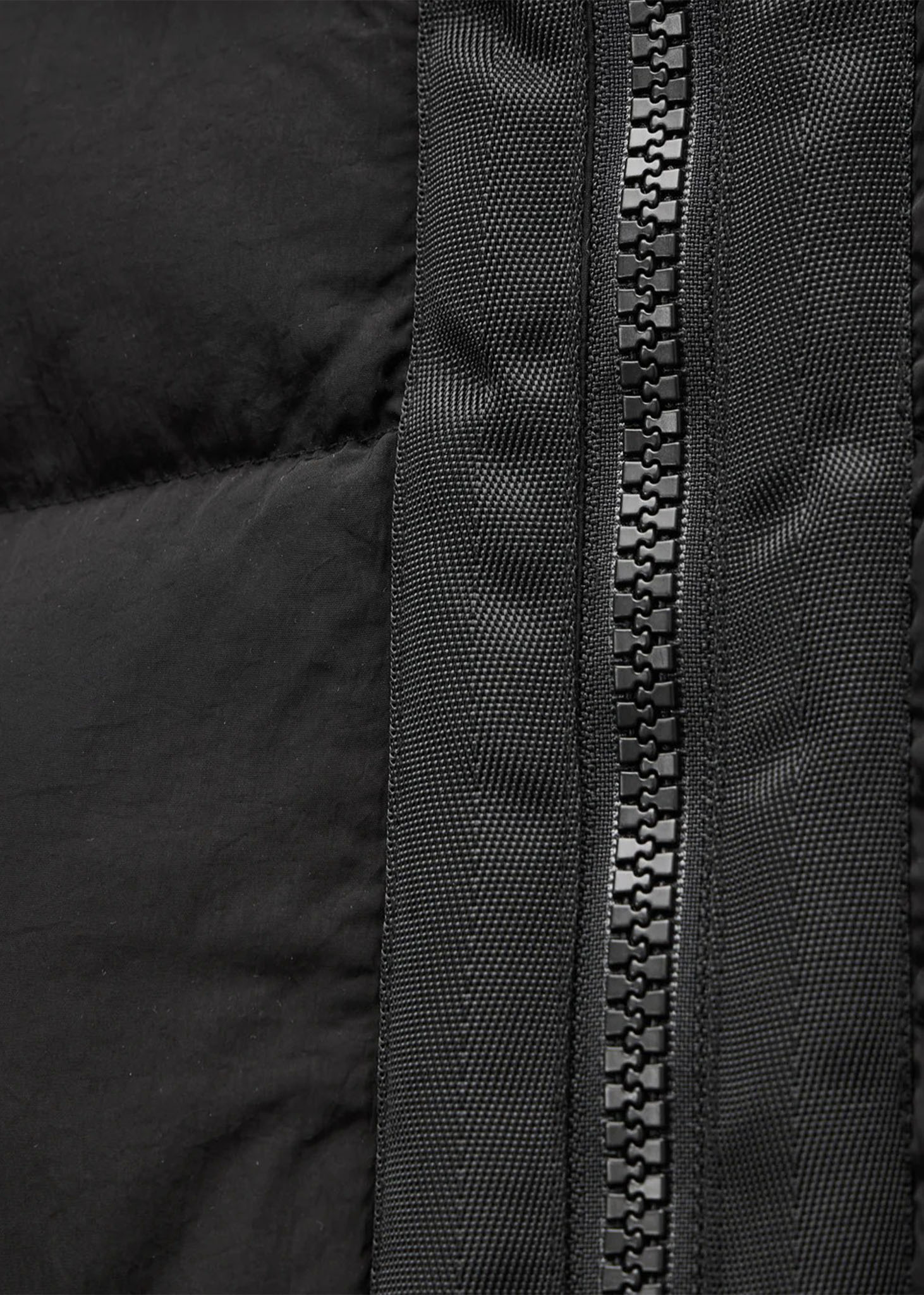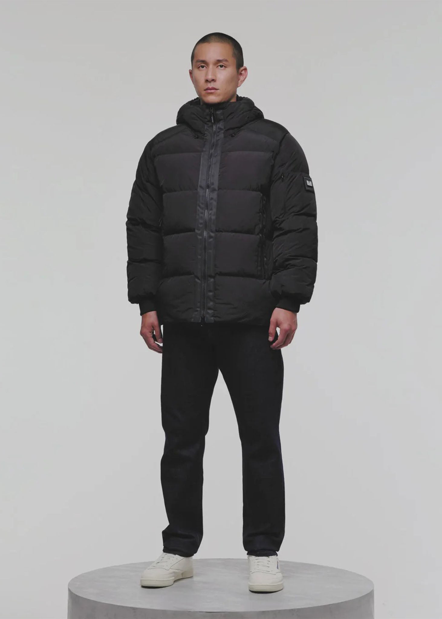 The Weekend Offender Amsterdam Tape Detail Jacket offers premium warmth and a striking design. Filled with PrimaLoft ThermoPlume+ insulation for lightweight warmth and long-lasting softness, it's crafted from water-repellent parachute nylon with a subtle reflective finish. The concealed hood mask and herringbone tape details make this jacket a true standout.