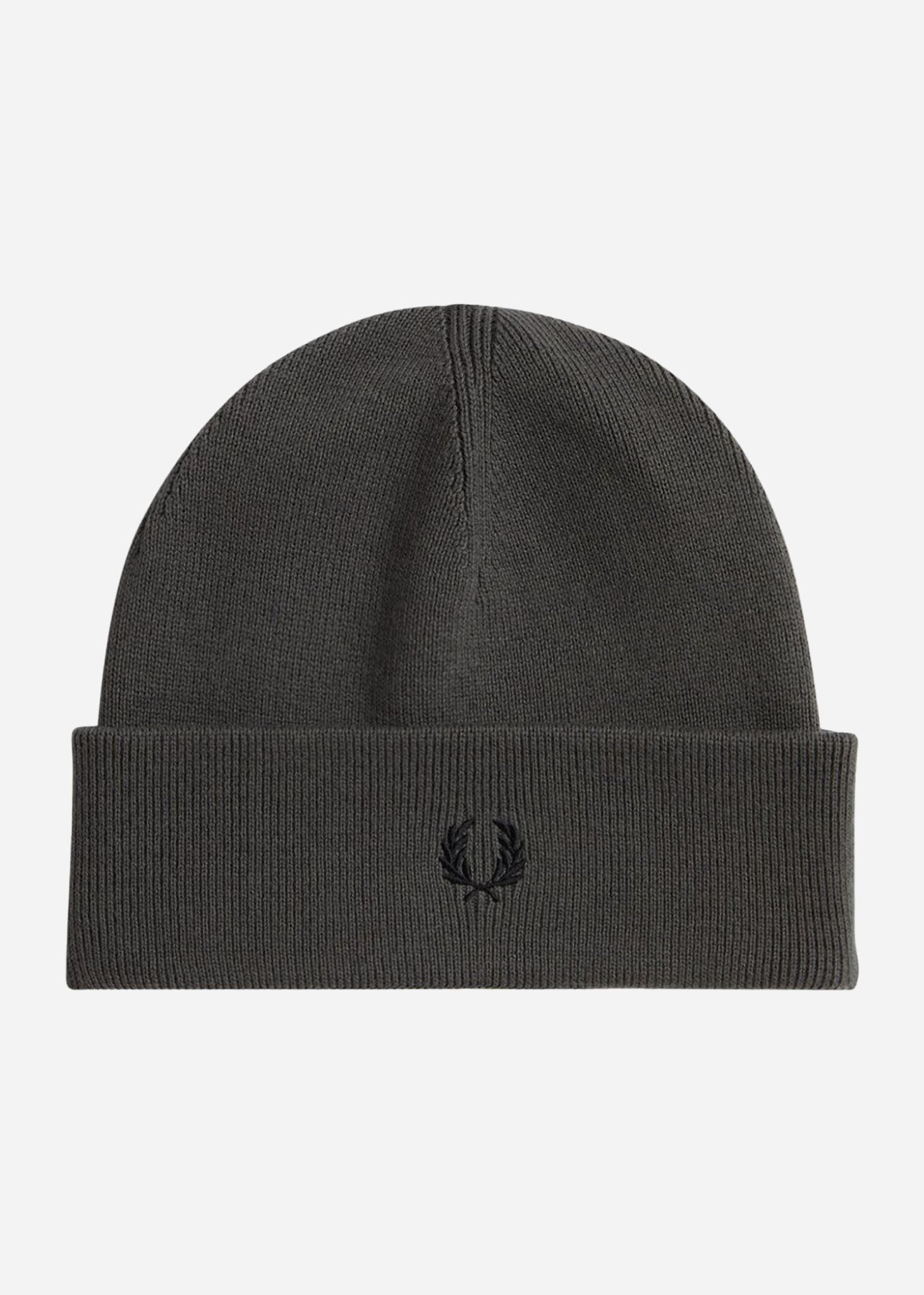 The Fred Perry ribbed beanie is made from a cotton and merino wool blend and offers both style and comfort. This beanie has a regular fit and length and is finished with an embroidered Laurel Wreath logo on the front for a recognizable Fred Perry look.