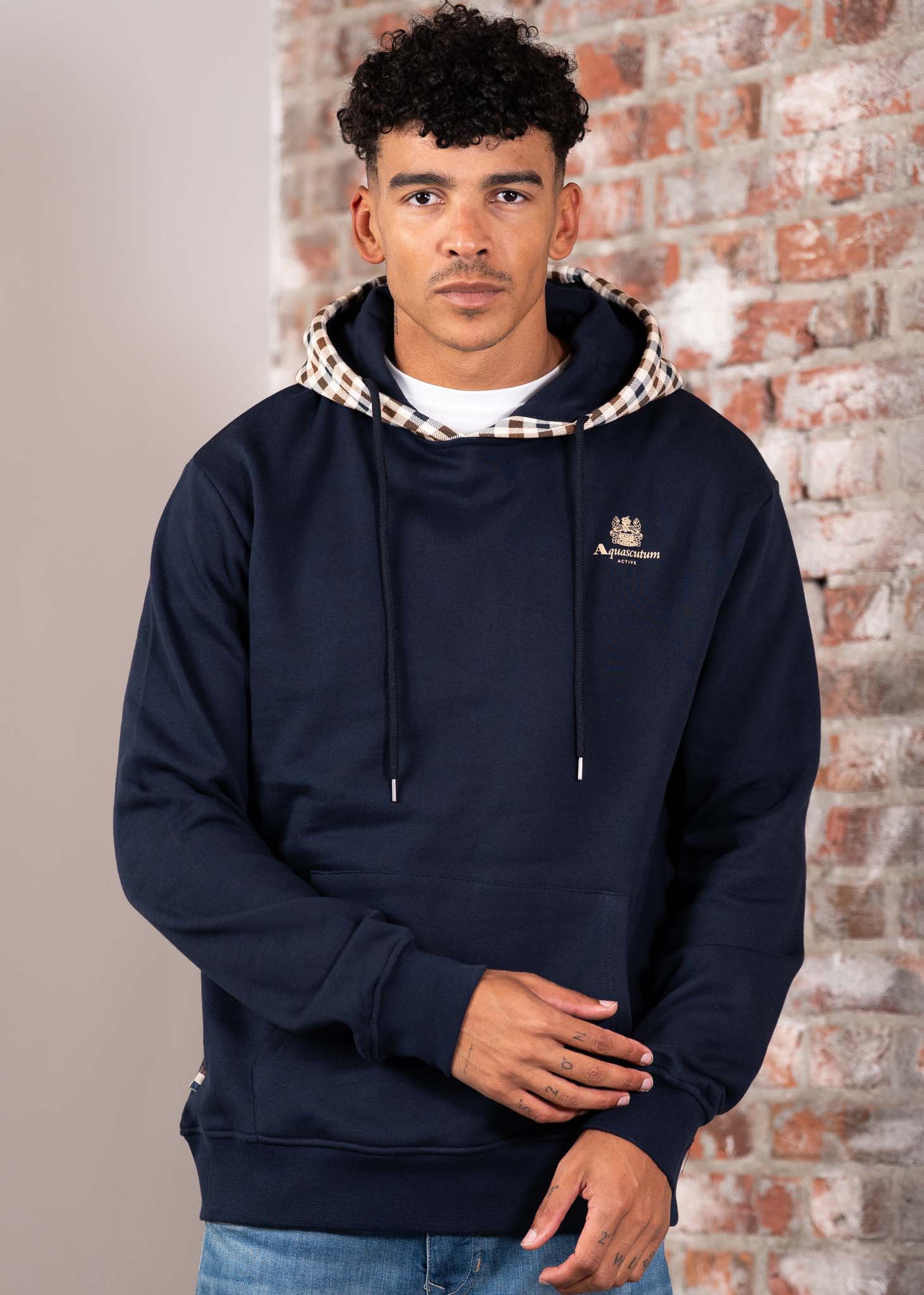 The Aquascutum Active Club Check Hoodie combines heritage with modern comfort. Made from soft 100% cotton brushed fleece, it features a striking external Club Check panel on the hood and a subtle Aquascutum Active logo with Crest on the chest. A clean pullover with a recognizable signature look.