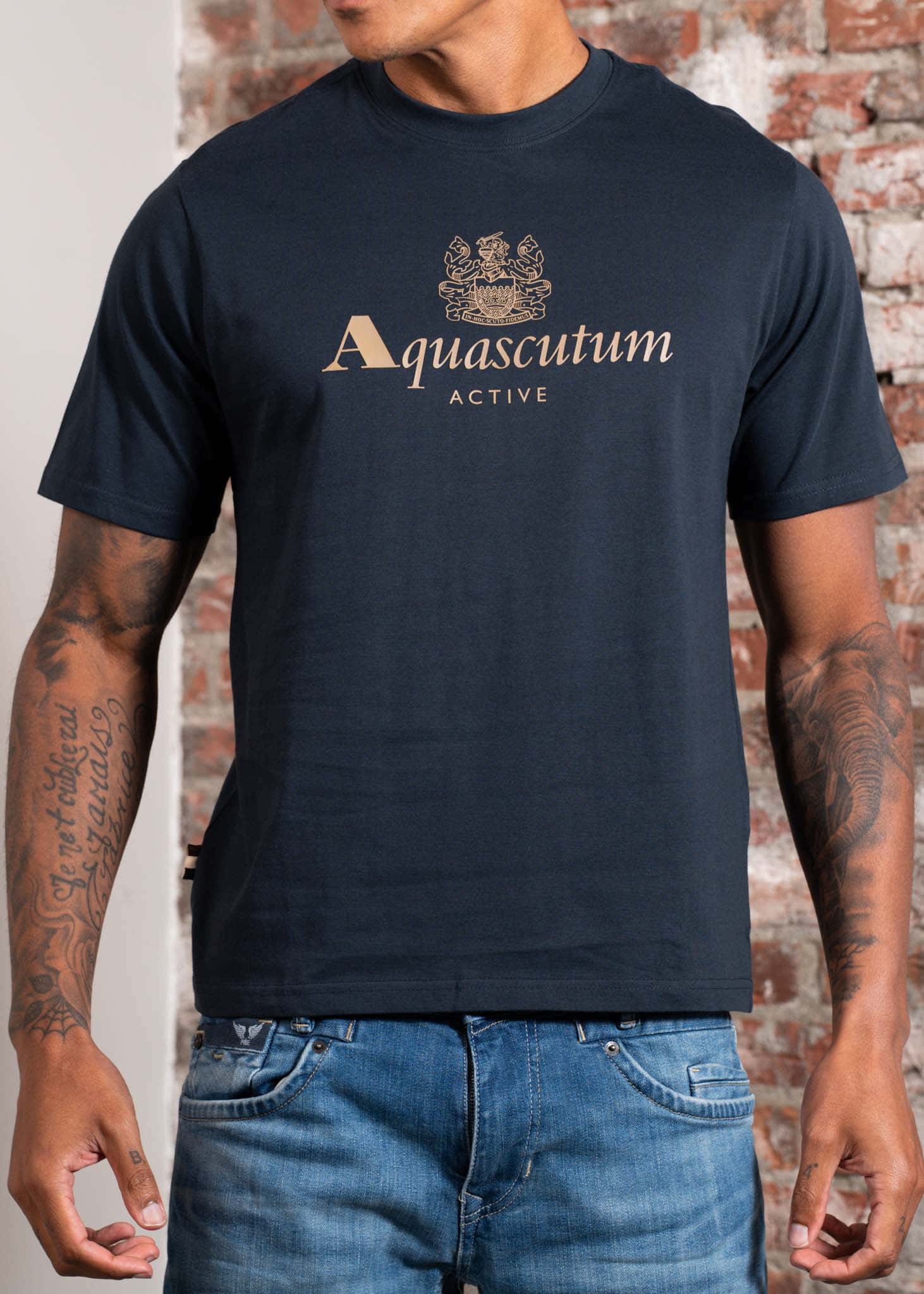 Statement piece from British heritage brand Aquascutum. This T-shirt features an oversized plastisol logo print on the chest and is made from 100% cotton in a comfortable regular/loose fit. Timeless, clean and instantly recognizable.