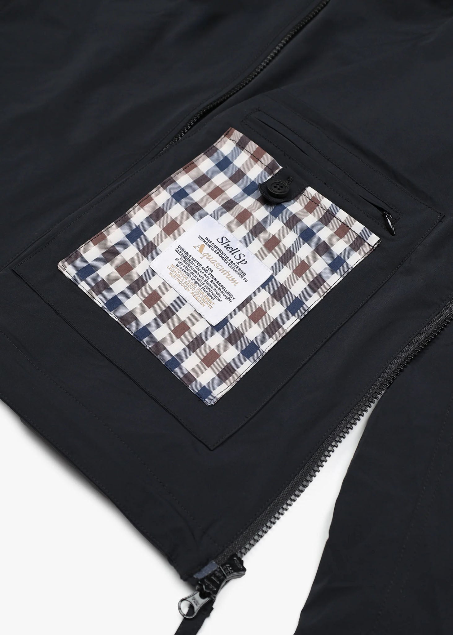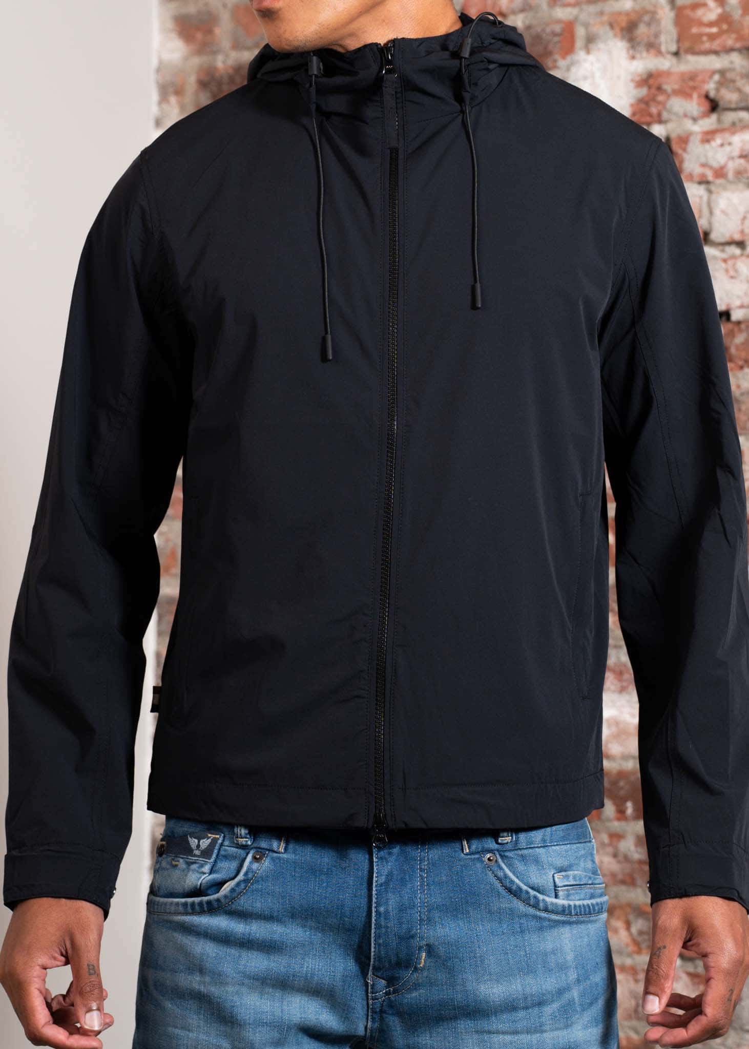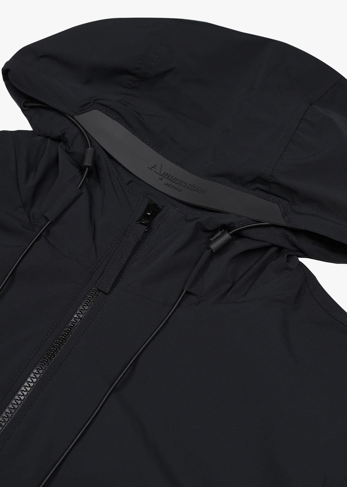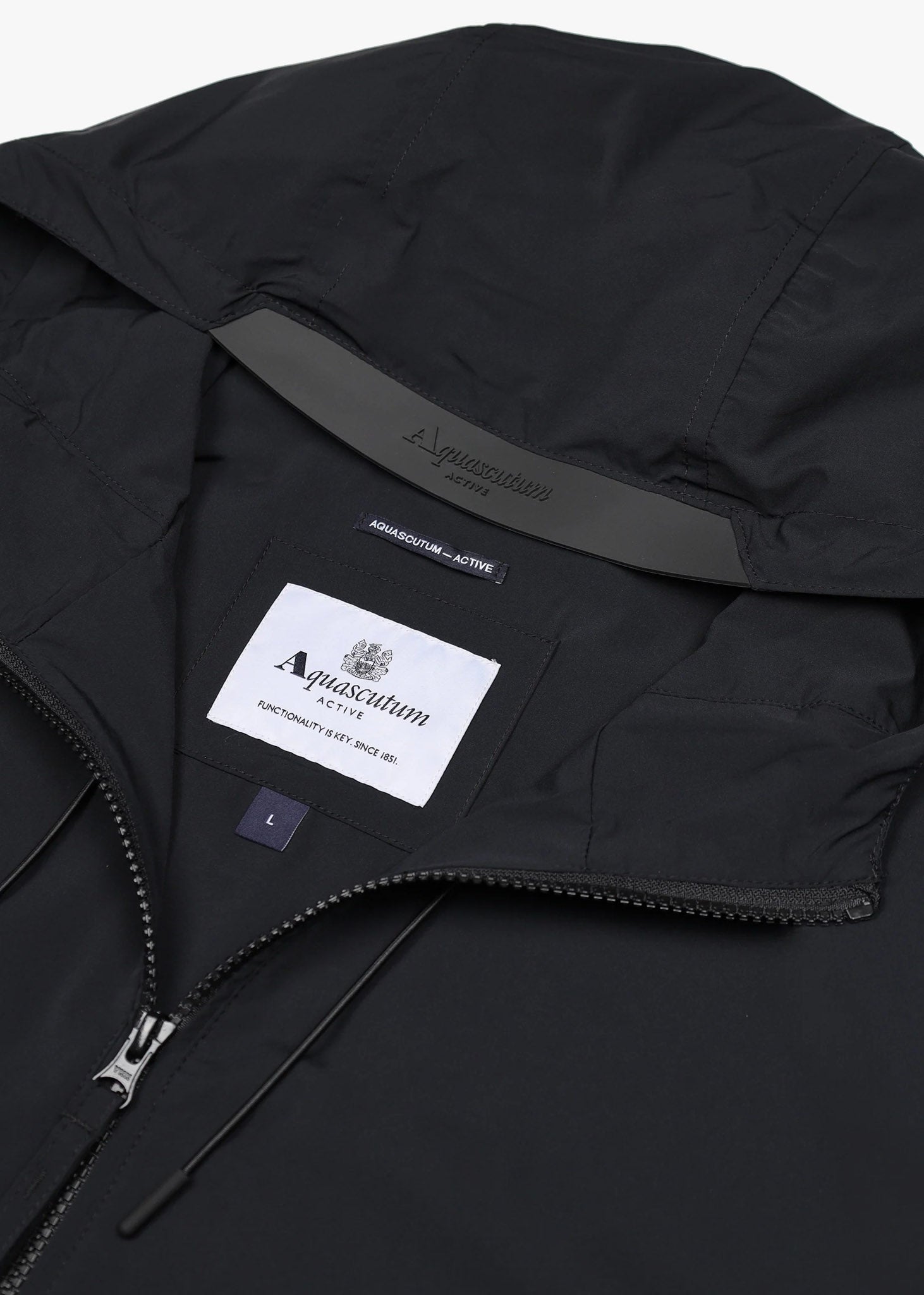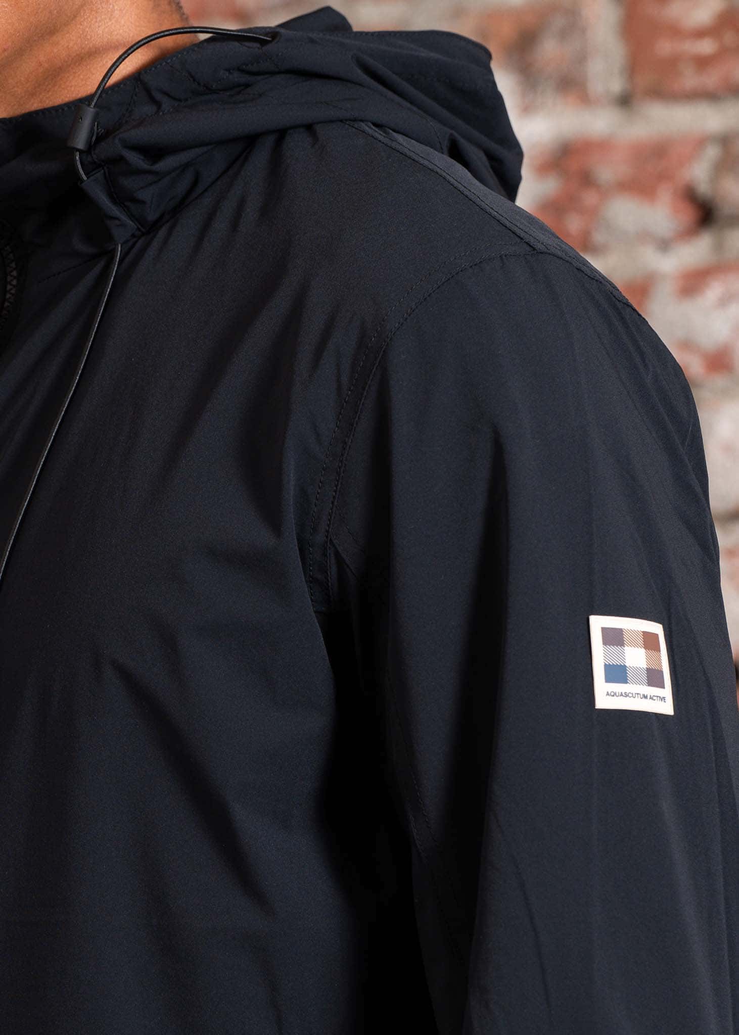The Aquascutum Hooded Stretch Windbreaker in black is a modern windbreaker with sporty details. Made of a comfortable stretch fabric for optimal freedom of movement and finished with luxurious details such as the 3D logo on the hood and the iconic Club Check patch.