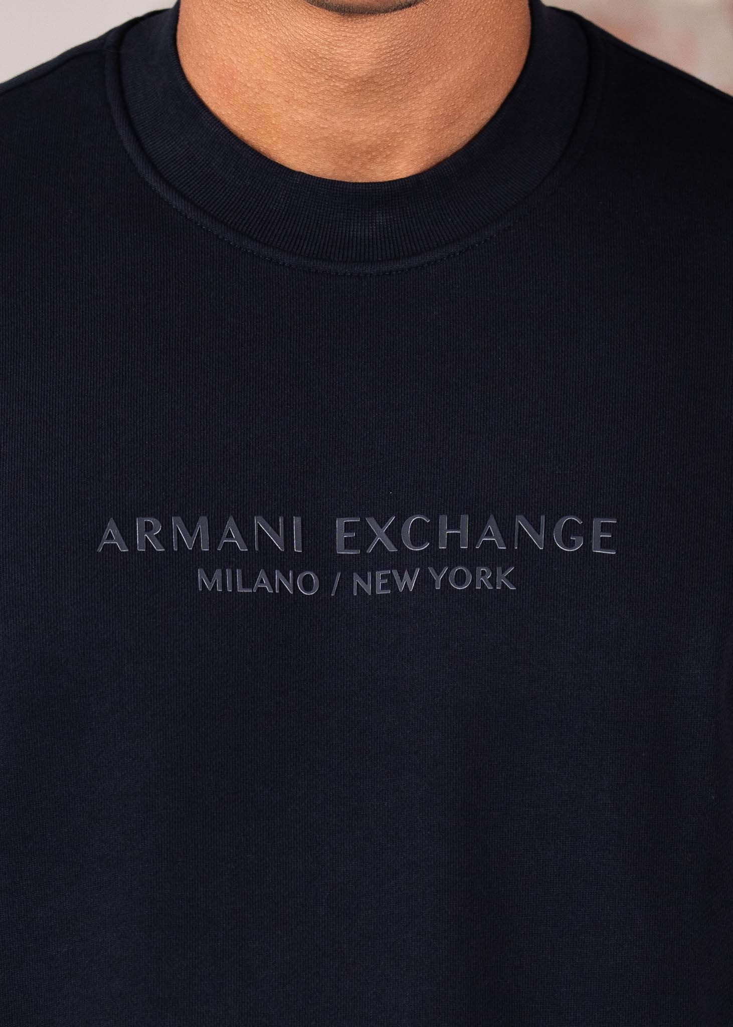 The Armani Exchange Cotton Sweatshirt is a timeless classic with a minimalist look. Made from soft 100% cotton for everyday comfort, it features a classic crew neck and a subtle tone-on-tone Milano/New York print on the chest.