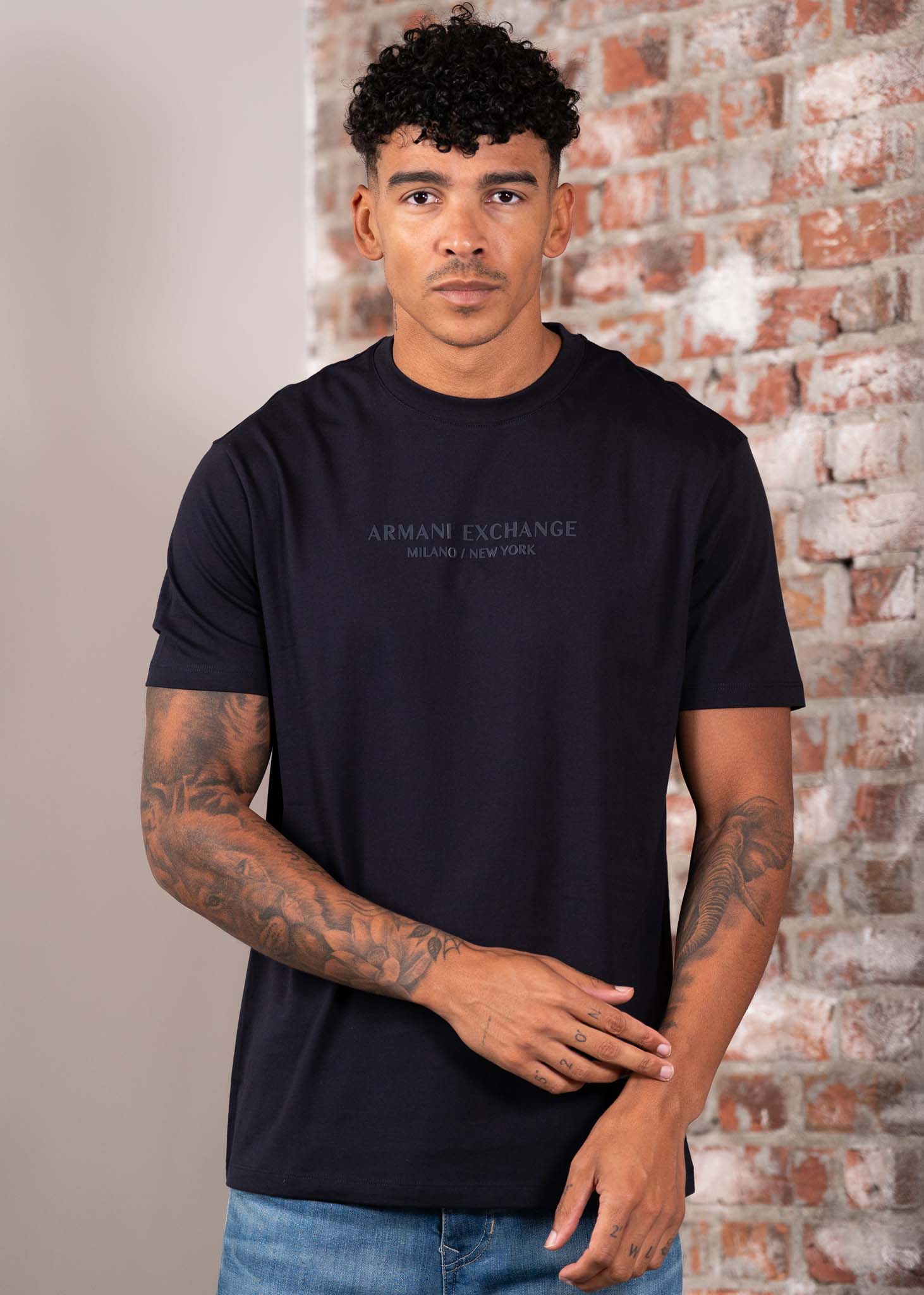 The Armani Exchange T-shirt is a minimalist essential with a subtle touch of luxury. Crafted from soft cotton jersey, it has a regular fit and features the tone-on-tone "Armani Exchange Milano / New York" print on the chest.