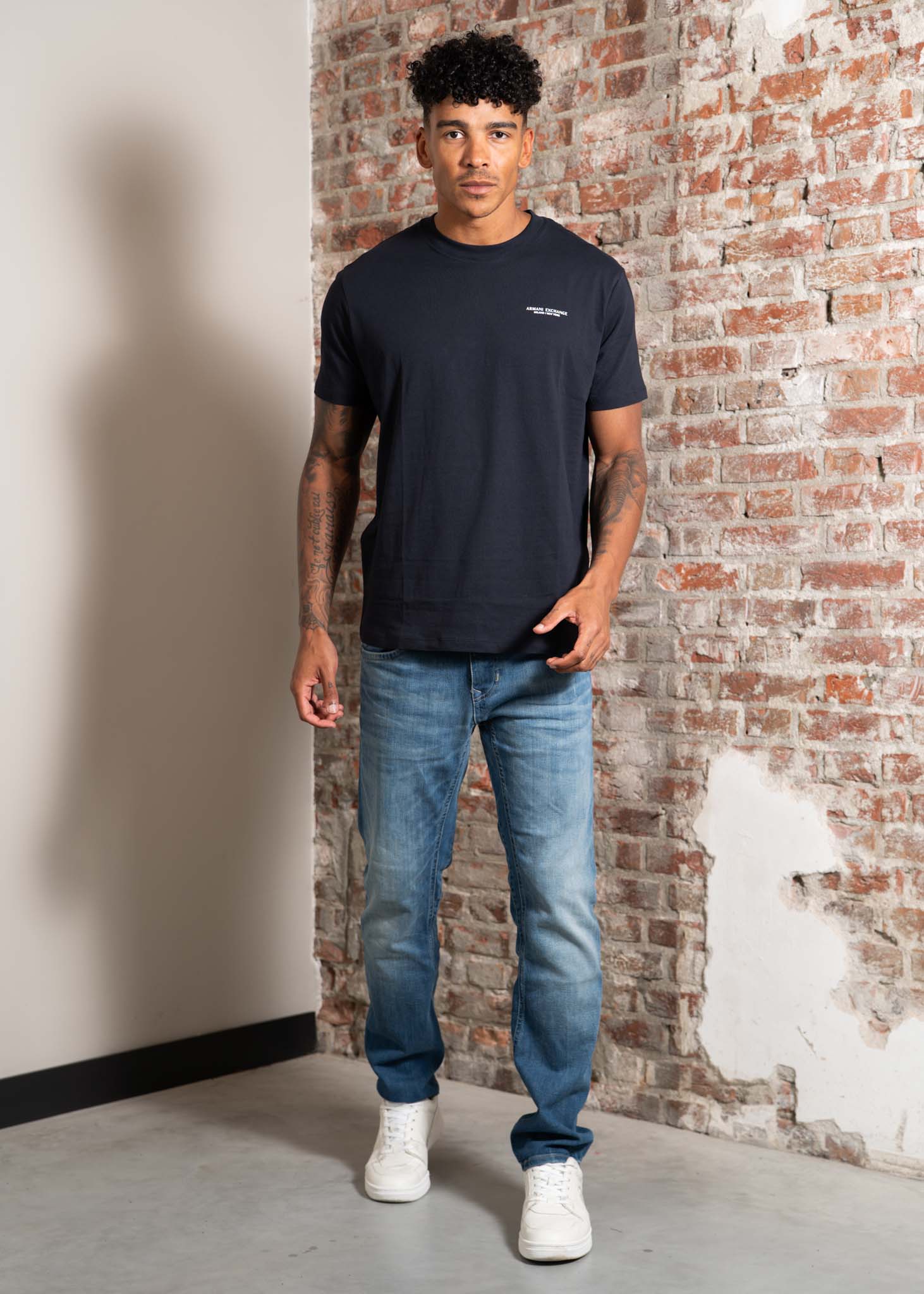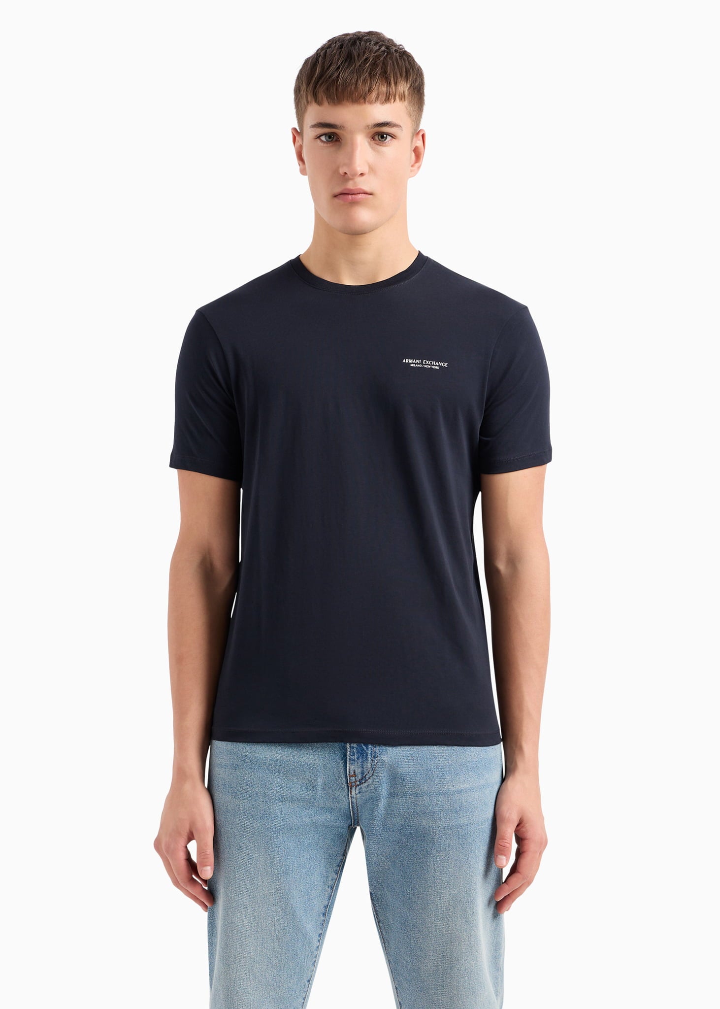 This T-shirt reflects the contemporary style of A|X Armani Exchange. The logo on the front emphasizes the modern look of the collection.