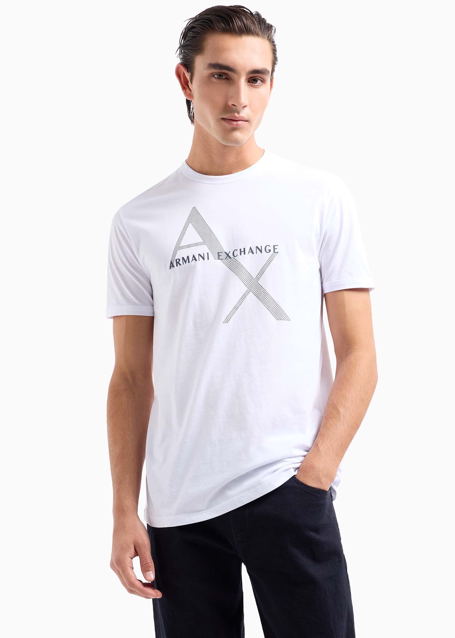 This Armani Exchange T-shirt adds a unique element to your look with the striking diagonal A|X logo. It is the result of careful design for a logo that is both distinctive and versatile.