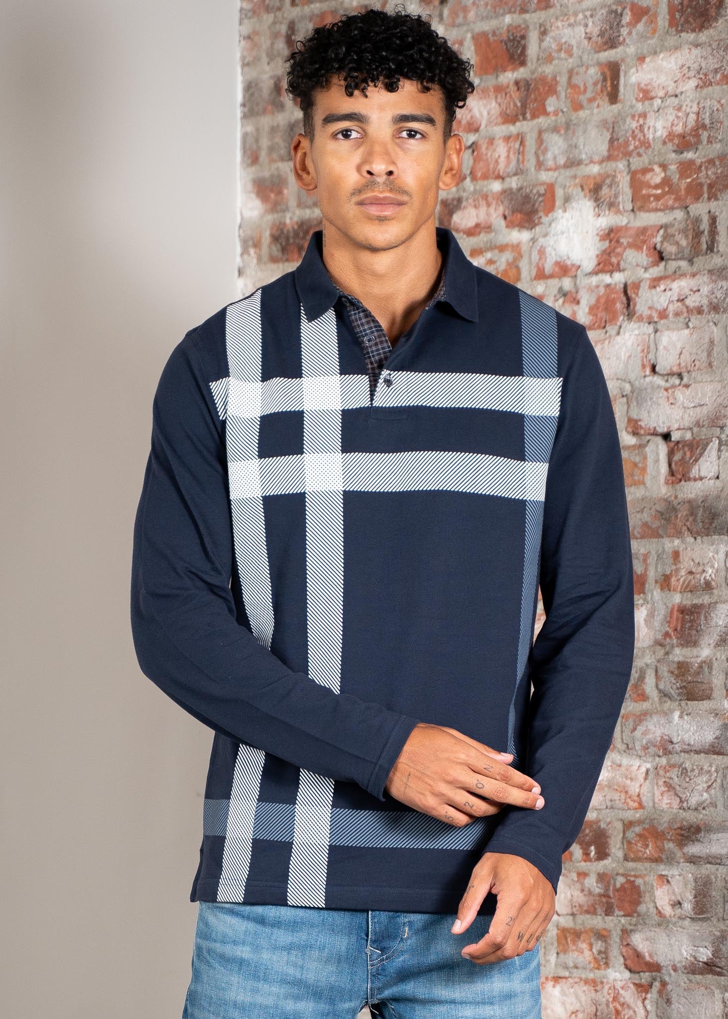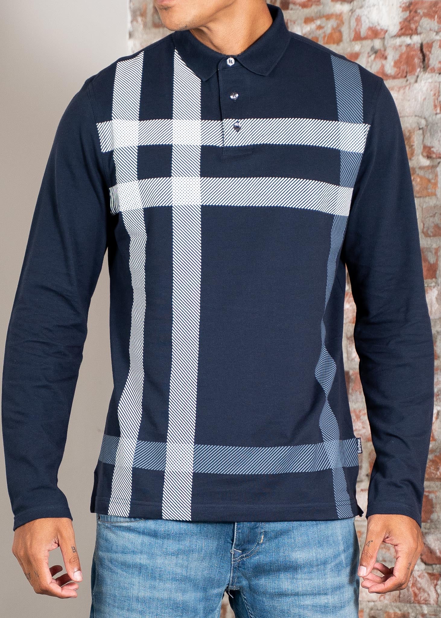 The Barbour Blain Tartan Long Sleeve Polo is a striking piece for casual occasions. It features an oversized tartan pattern, a two-button placket, and ribbed details on the collar and cuffs. It's finished with subtle Barbour tartan accents on the collar and placket.