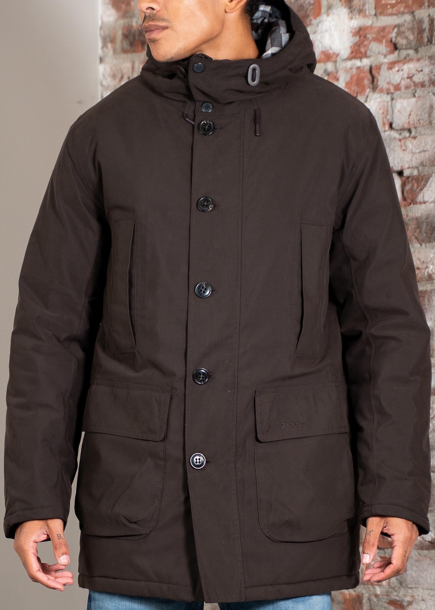 The Barbour Winter Beaufort Parka is a warm and waterproof jacket perfect for cold days. With a quilted lining, a fixed hood, and practical pockets, this parka combines comfort with signature Barbour style. Subtle tartan accents and Barbour embroidery complete the look.