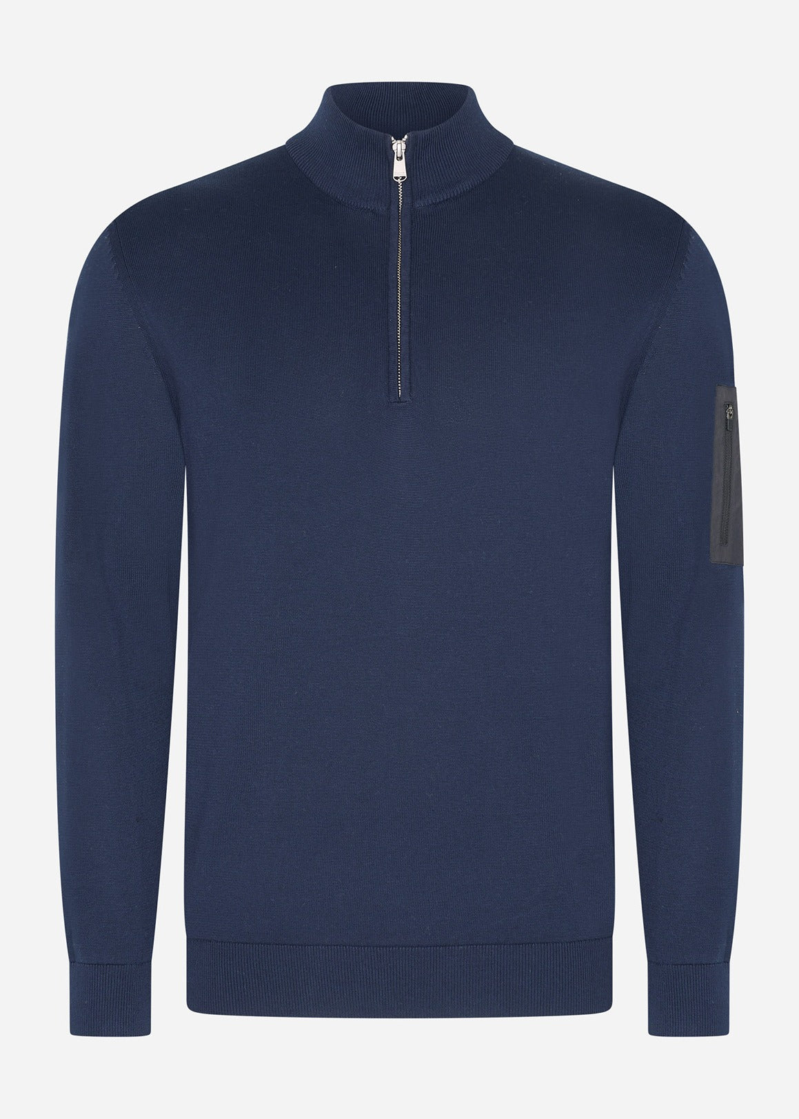 Made from breathable cotton for optimum softness and warmth, the Barbour B.Intl Blades Half-Zip Sweater is a practical layer for cold days. Featuring a funnel neck collar, ribbed cuffs and a contrast sleeve pocket, this long sleeve essential offers a bold look with a logo plaque for a branded finish.