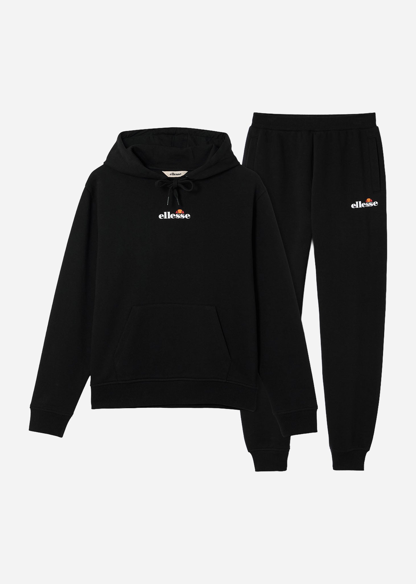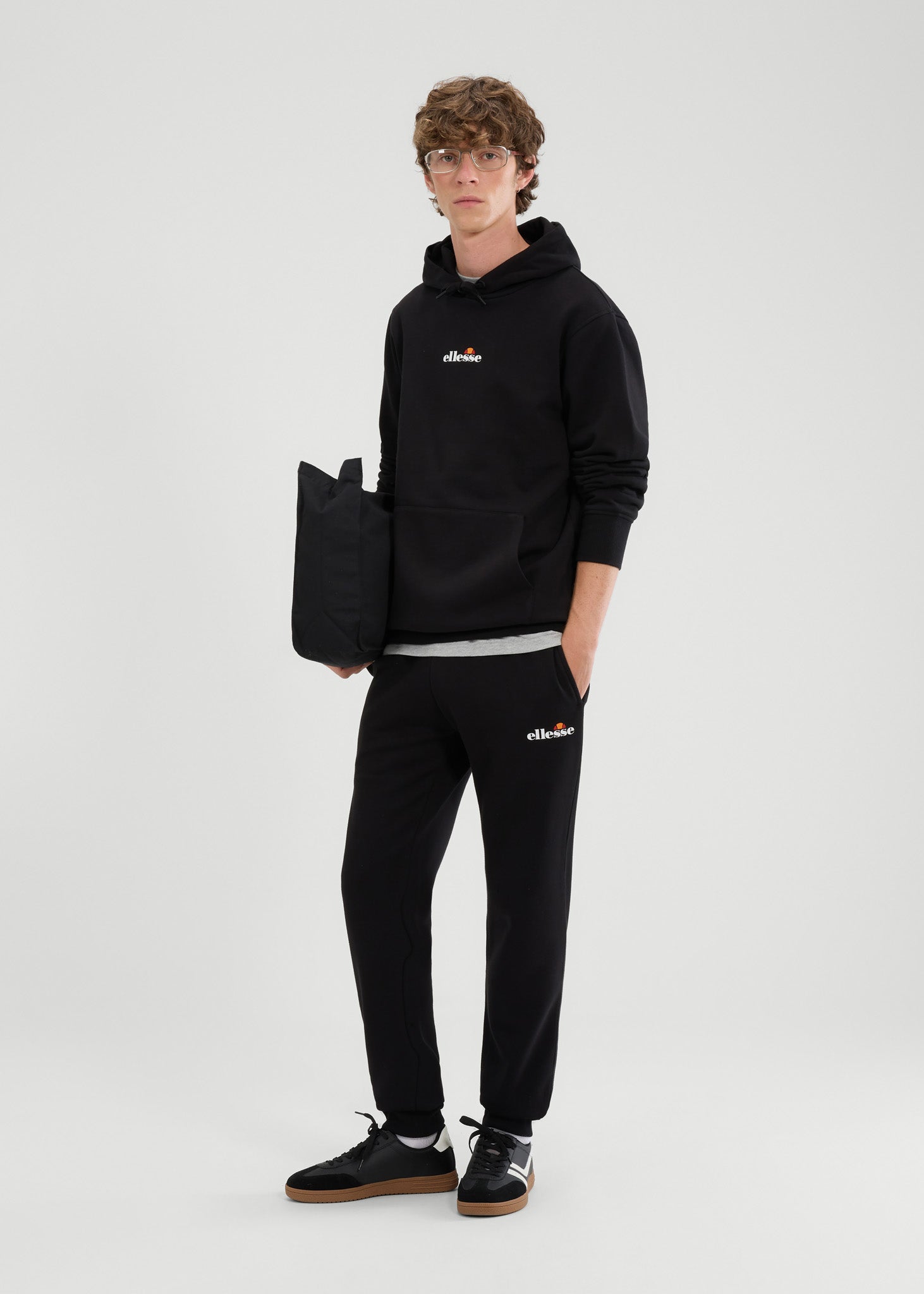 The Ellesse Sucre Hooded Tracksuit in black combines comfort and style in a complete look. The hoodie is finished with a kangaroo pocket, an adjustable hood, and the iconic Ellesse logo, while the joggers offer convenience with open pockets and an elasticated drawstring waistband.