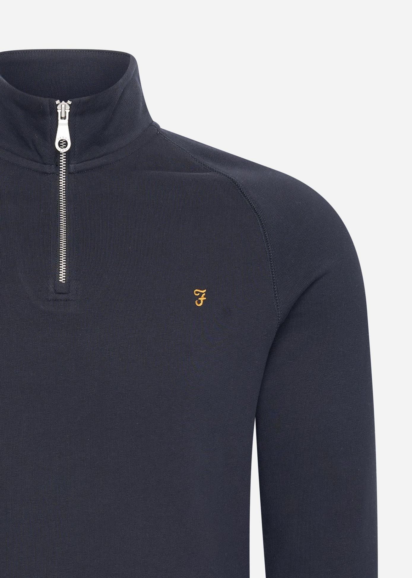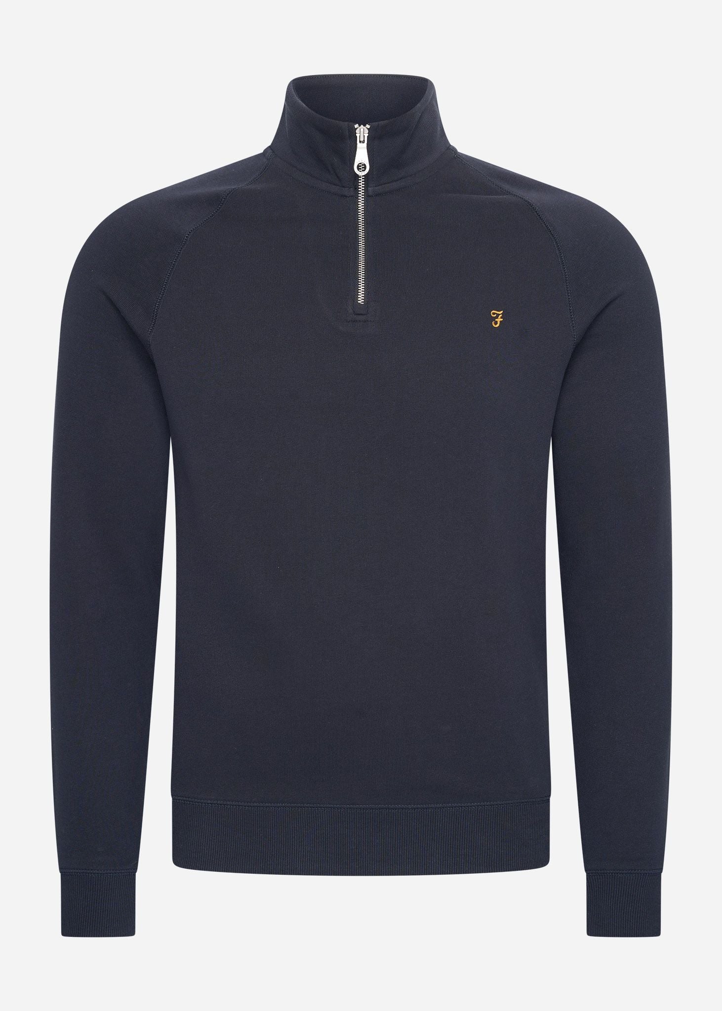 Made from 100% organic cotton, the Farah Jim sweater features a quarter zip with a deep, ribbed collar. With matching detailing on the hem and cuffs, this slim-fit sweater comes in Farah Forest Green with our signature gold Farah logo to the left chest.