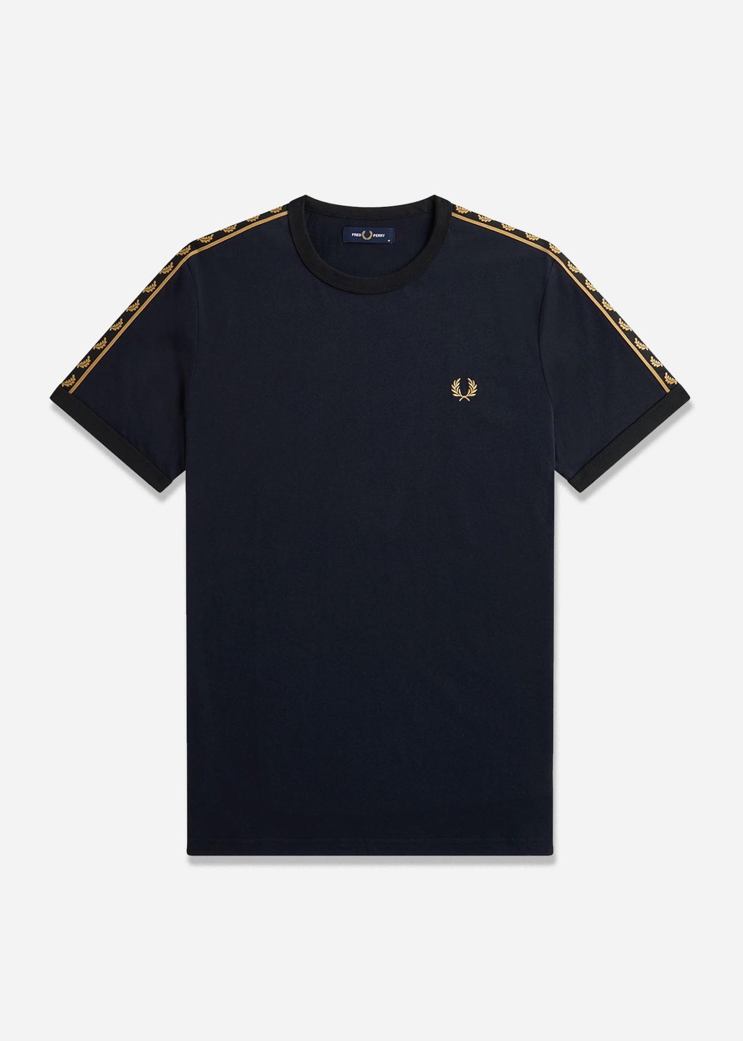 Defined by its rib neck and cuff, our ringer T-shirt is pure '90s. Designed with its original Laurel Wreath track tape at the sleeve, in mining gold.