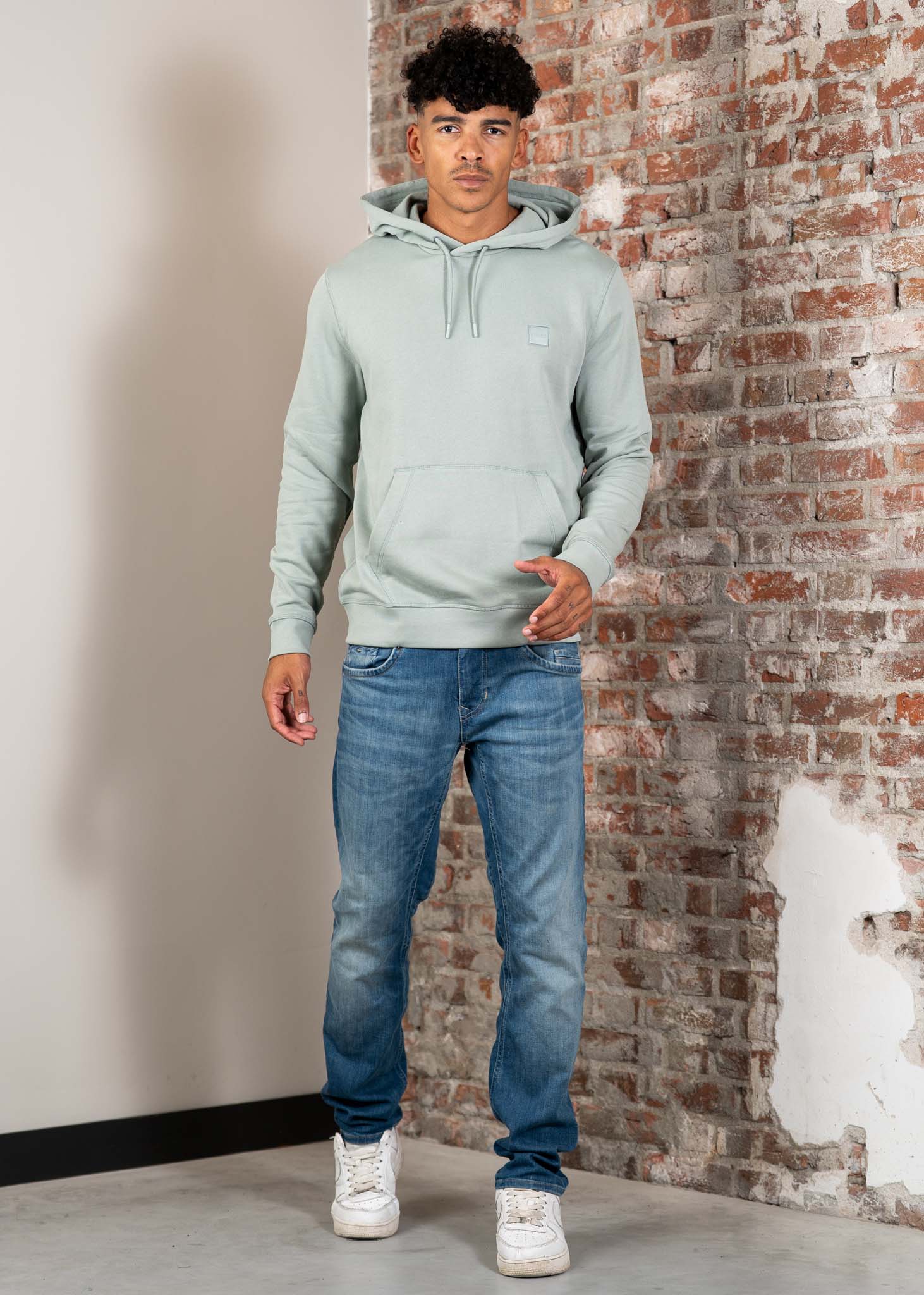 The Hugo Boss WETALK hoodie is a comfortable essential crafted from super-soft French terry cotton. Finished with a tonal woven logo patch at the chest and featuring a classic drawstring hood, this regular fit style effortlessly combines timeless design with modern streetwear influences. Complete with a front pouch pocket and subtle branding, it's ideal for everyday wear.