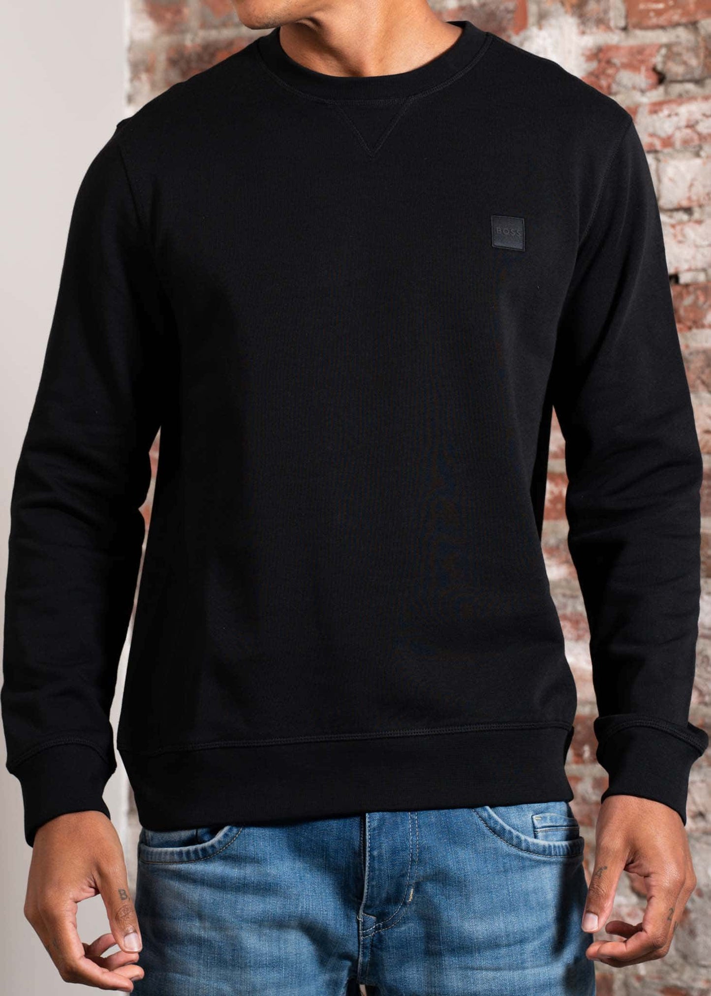 The Hugo Boss Westart Sweater for men offers ultimate comfort with its soft cotton blend. Designed for everyday use, this relaxed-fit sweater has a regular fit and a classic crew neck. The ribbed cuffs on the sleeves and hem ensure a perfect fit. The iconic Hugo Boss logo on the left side of the chest completes the design.