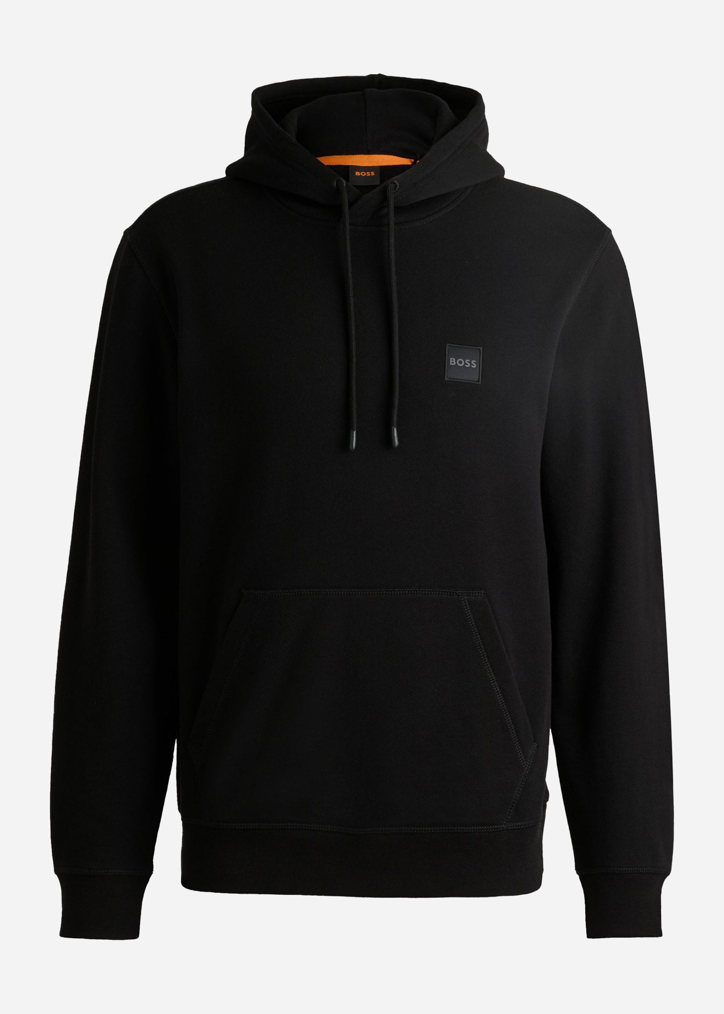 The Hugo Boss WETALK hoodie is a comfortable essential crafted from super-soft French terry cotton. Finished with a tonal woven logo patch at the chest and featuring a classic drawstring hood, this regular fit style effortlessly combines timeless design with modern streetwear influences. Complete with a front pouch pocket and subtle branding, it's ideal for everyday wear.