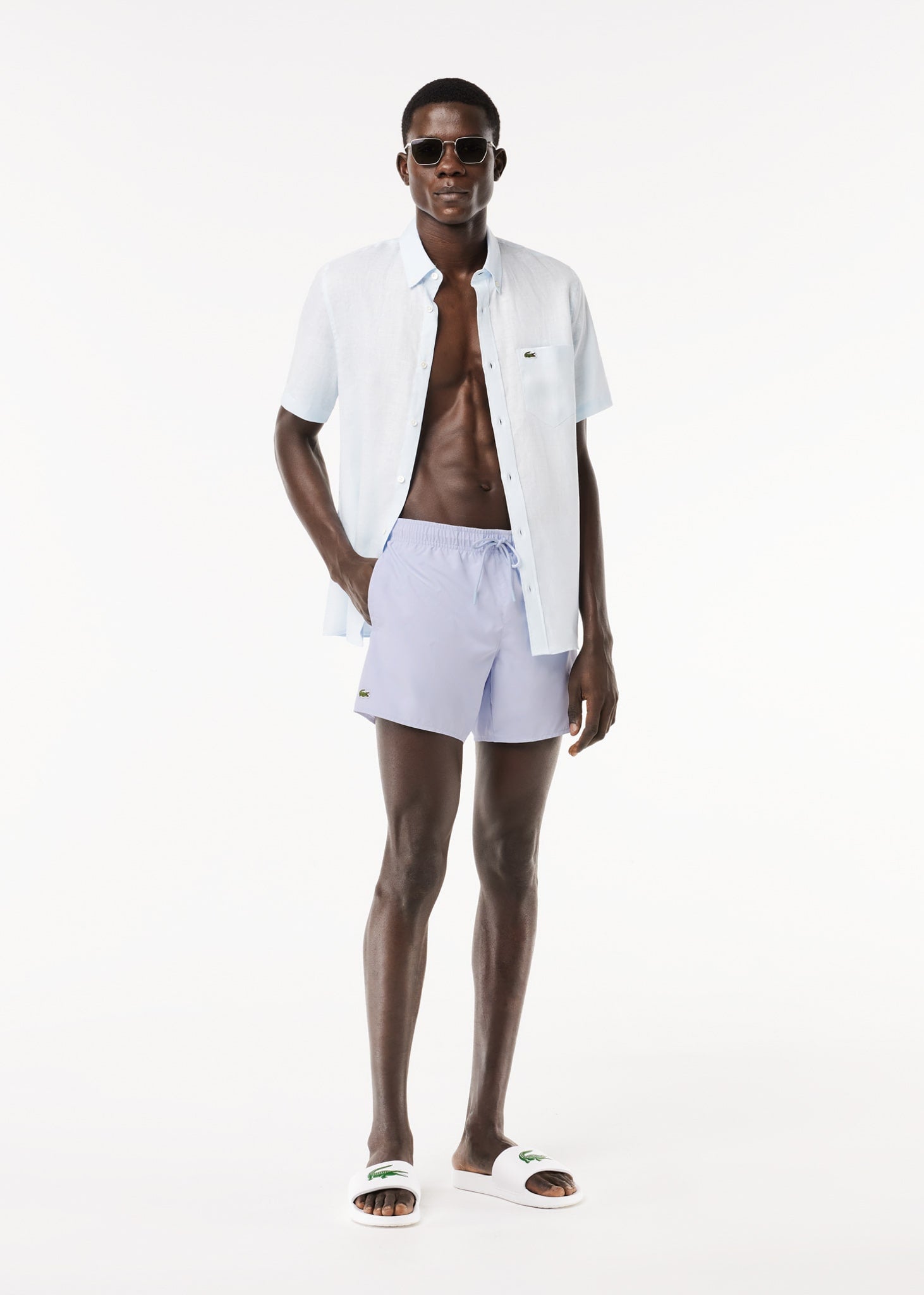 - Lightweight, quick-drying recycled taffeta: Stay cool and comfortable all day long with these Lacoste swim shorts made from recycled taffeta. The lightweight fabric dries quickly, so you won't be stuck in wet shorts after your swim.