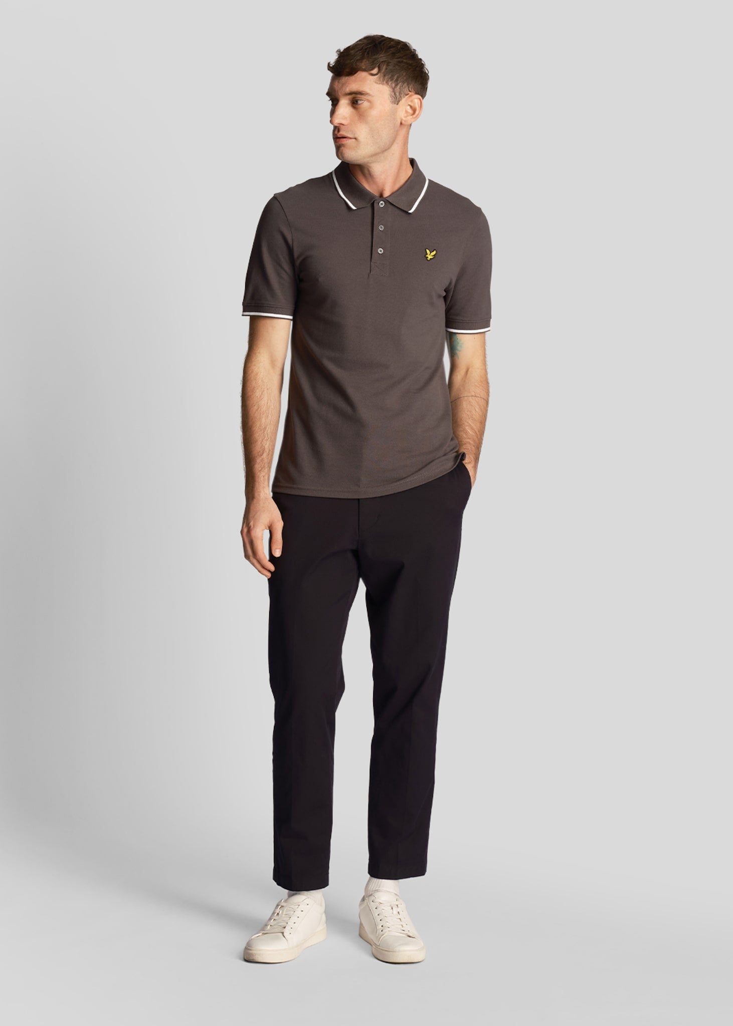 Tipped polo shirt - gun metal white