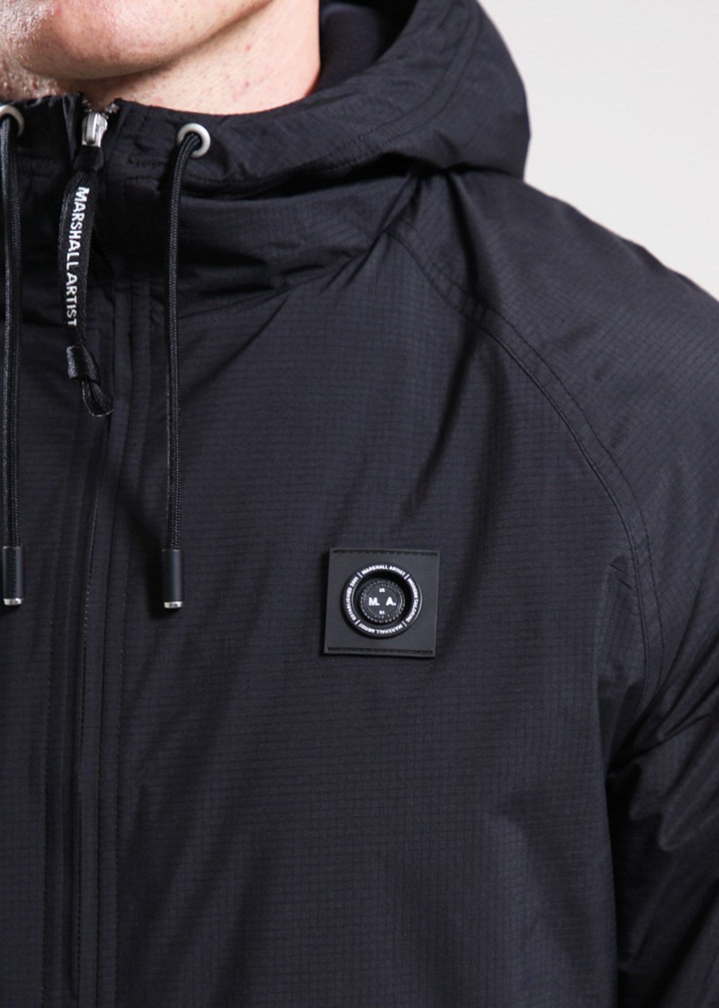 The Marshall Artist Ripstop Jacket is designed for maximum protection and comfort. Made from 100% waterproof ripstop nylon with eco-fill and a soft polar fleece lining, it's ideal for cold and wet conditions. The adjustable hood, cuffs, and hem ensure a perfect fit, while technical details and subtle branding give the jacket a modern, functional look.