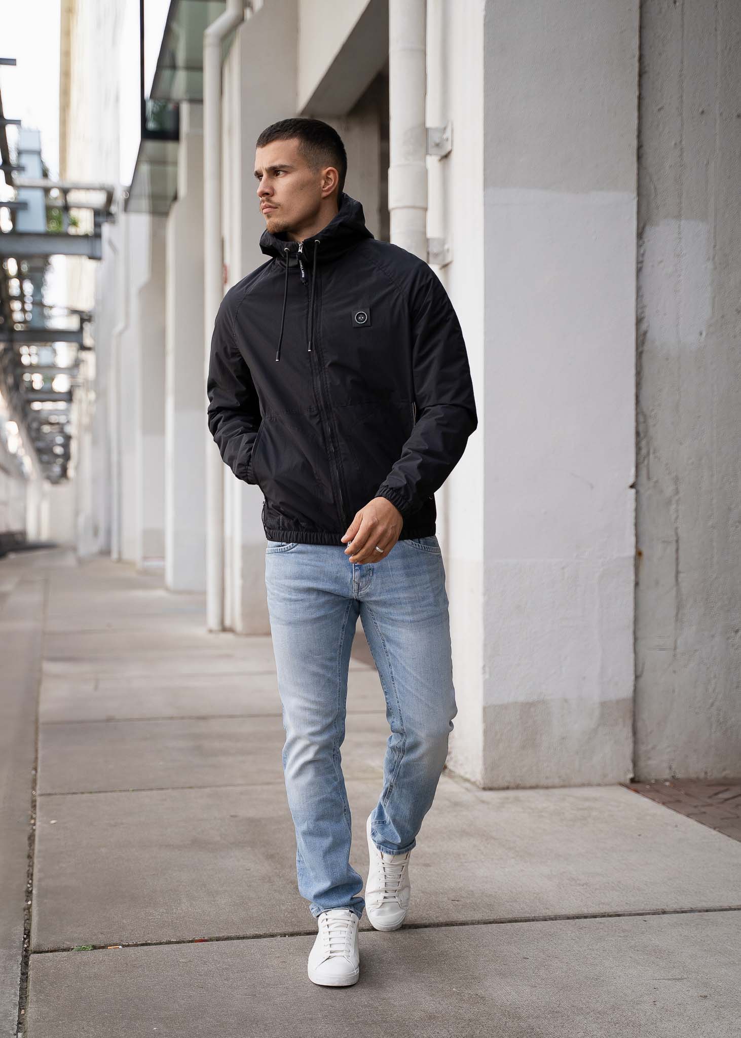 - Adjustable hood, cuffs & hem