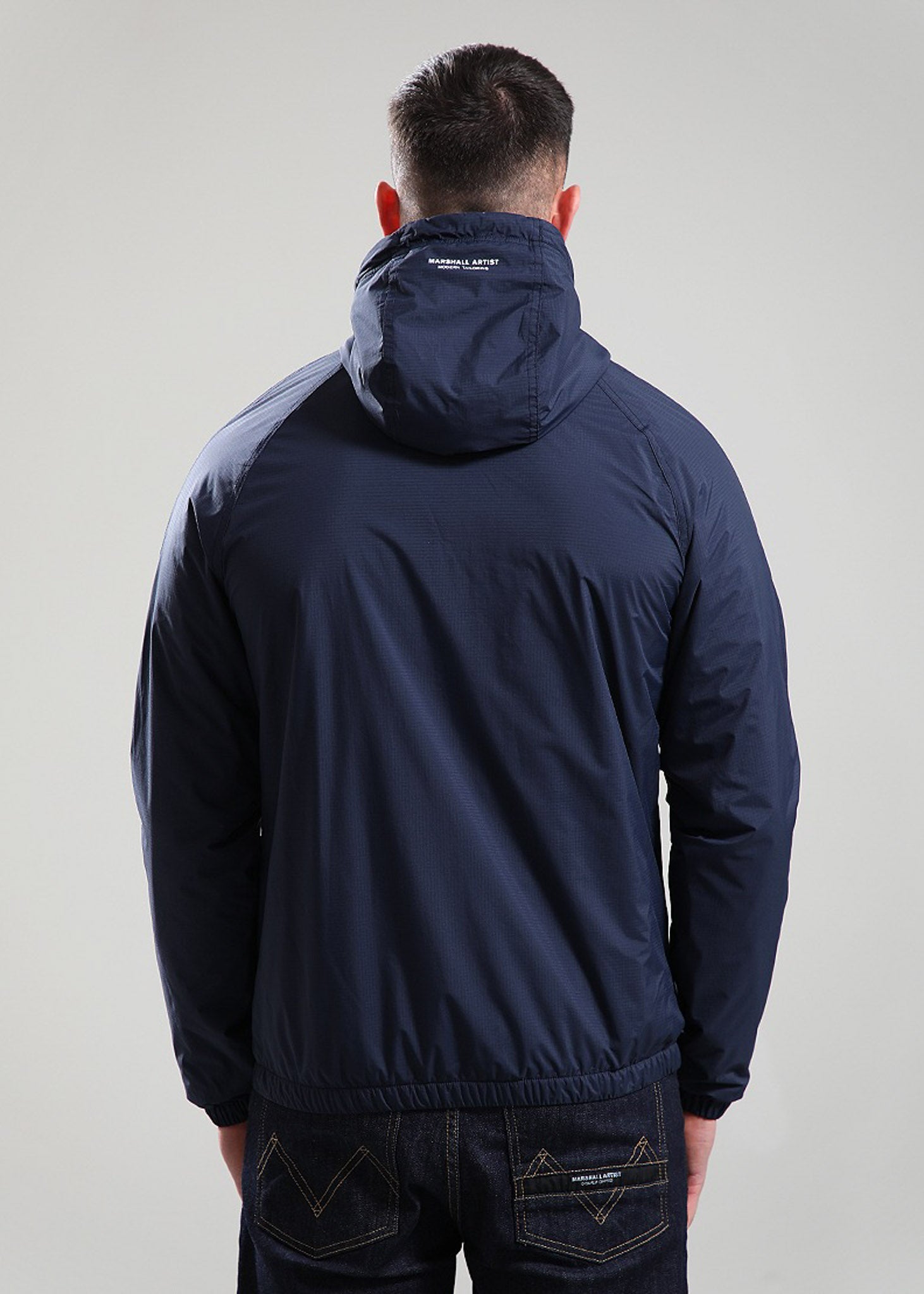 The Marshall Artist Ripstop Jacket is designed for maximum protection and comfort. Made from 100% waterproof ripstop nylon with eco-fill and a soft polar fleece lining, it's ideal for cold and wet conditions. The adjustable hood, cuffs, and hem ensure a perfect fit, while technical details and subtle branding give the jacket a modern, functional look.