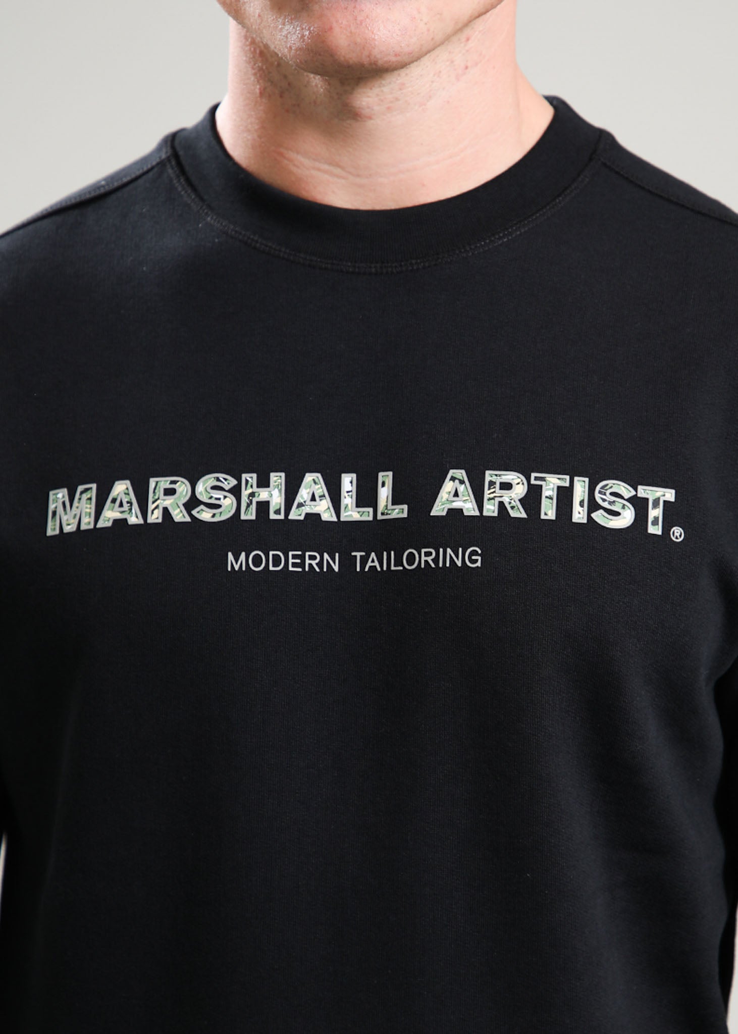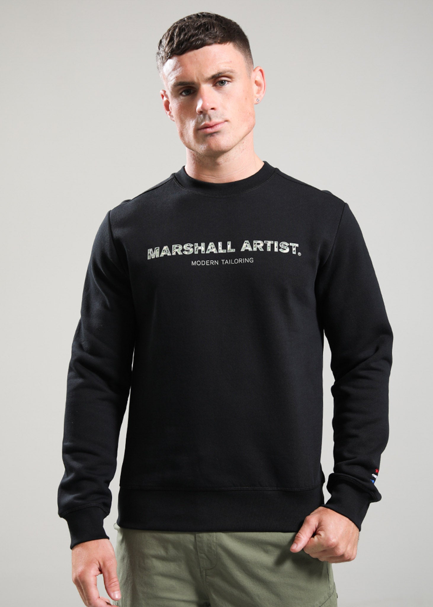 The Marshall Artist Keyline Crewneck is a comfortable sweater with subtle details and a modern finish. Made of 80% cotton and 20% polyester brushed-back fleece (320 gsm) for a soft, warm feel. The ribbed cuffs and collar provide a classic fit, while the external cover-stitched seams further enhance the cut-and-sew construction. Finished with a raised keyline injection and printed cotton appliqué at the chest, plus a tricolor embroidered detail on the sleeve. A regular fit for versatile everyday wear.