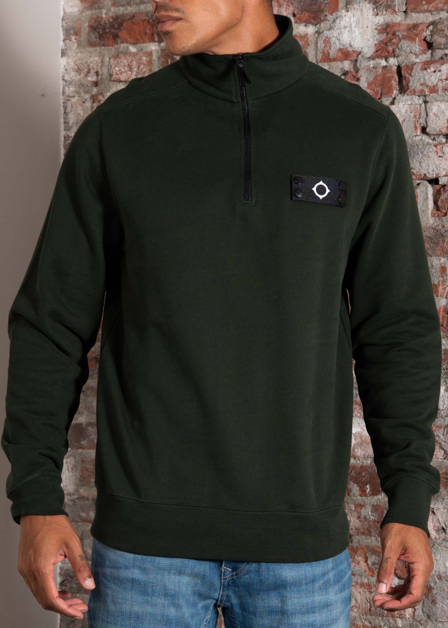 The Mastrum Quarter Zip Sweat combines comfort with a sleek look. It features a soft carbon finish, a sporty quarter zip, and the iconic removable ID badge on the chest.