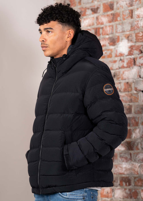 The Napapijri A Terez Jacket is a versatile piece that effortlessly combines protection and style. Made from sustainable ripstop fabric with 70% recycled content and a warm thermofiber lining, it's ideal for changing seasons.