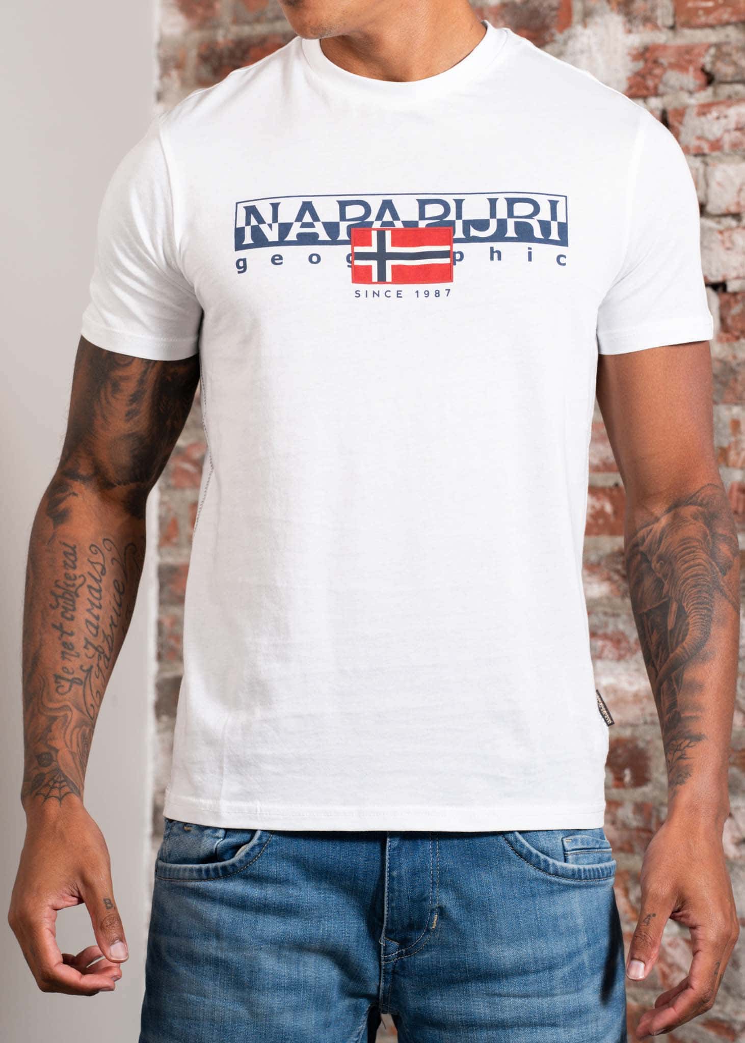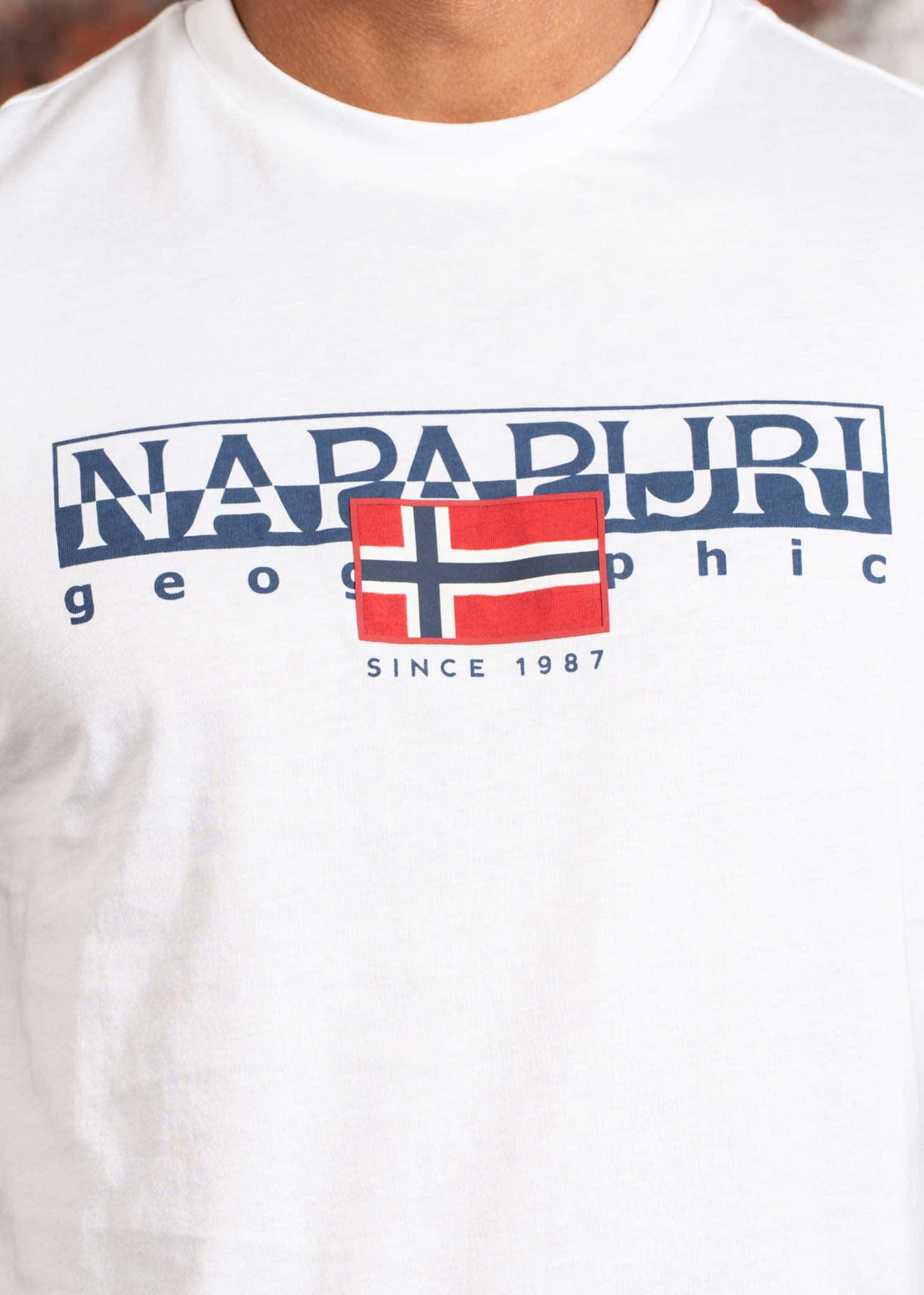 The Napapijri Aylmer T-Shirt pays homage to the brand's outdoor roots. Made from 100% cotton and finished with a Norwegian flag print on the chest. Perfect for casual days or active adventures.