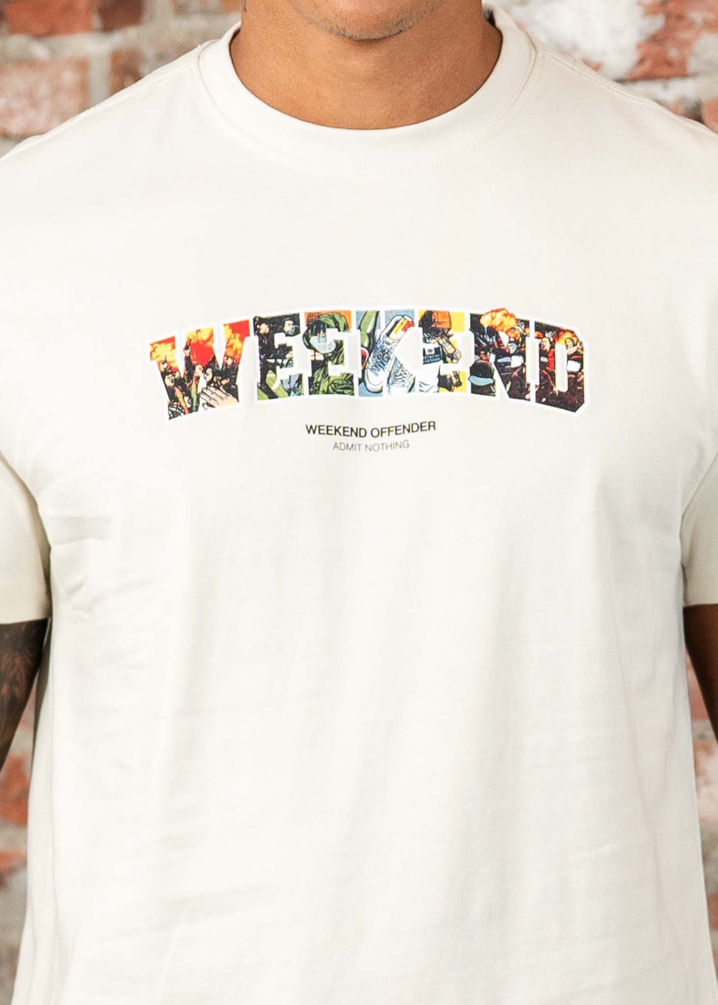 The Saturday Graphic Tee is all about the love of the weekend. The word "Weekend" is filled with iconic elements that represent the typical Saturdays of football fans around the world.