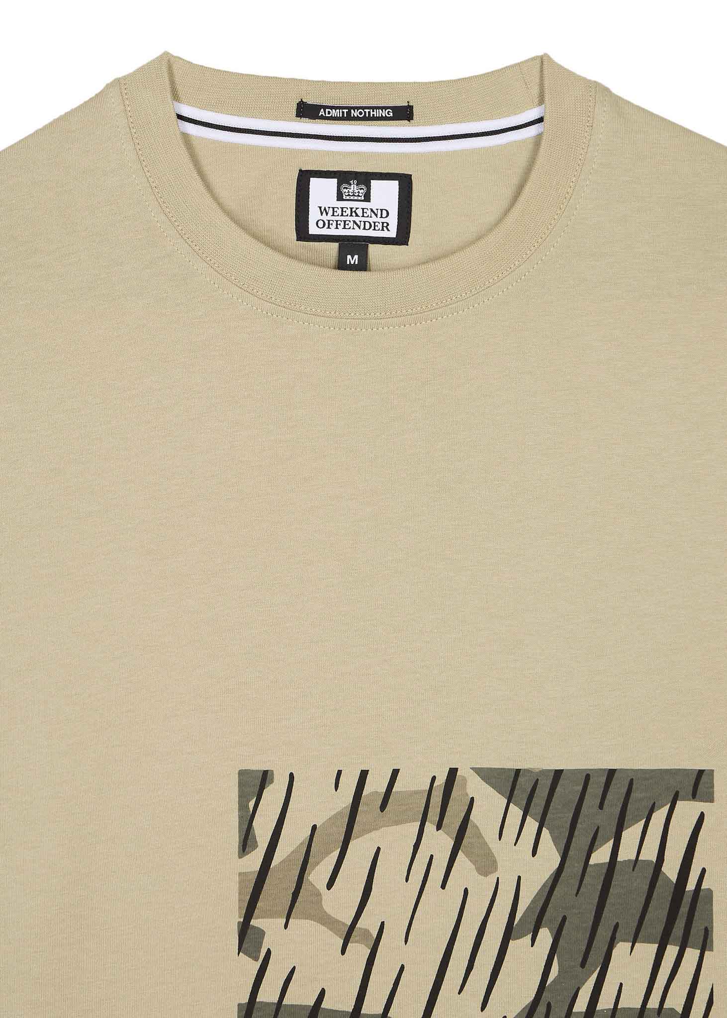 The Weekend Offender Noosa Camo T-Shirt is your perfect companion for warm days, offering both lightweight comfort and a touch of bold style. Made from 100% cotton single jersey fabric, this tee strikes the ideal balance between a thick, quality feel and a breathable construction to keep you cool. The shirt features a large-scale disruptive rain camo print across the front and back, designed by Weekend Offender for a unique and eye-catching look. Finished with a comfortable ribbed neck, the Noosa Camo T-Shirt is a must-have for any casual wardrobe.