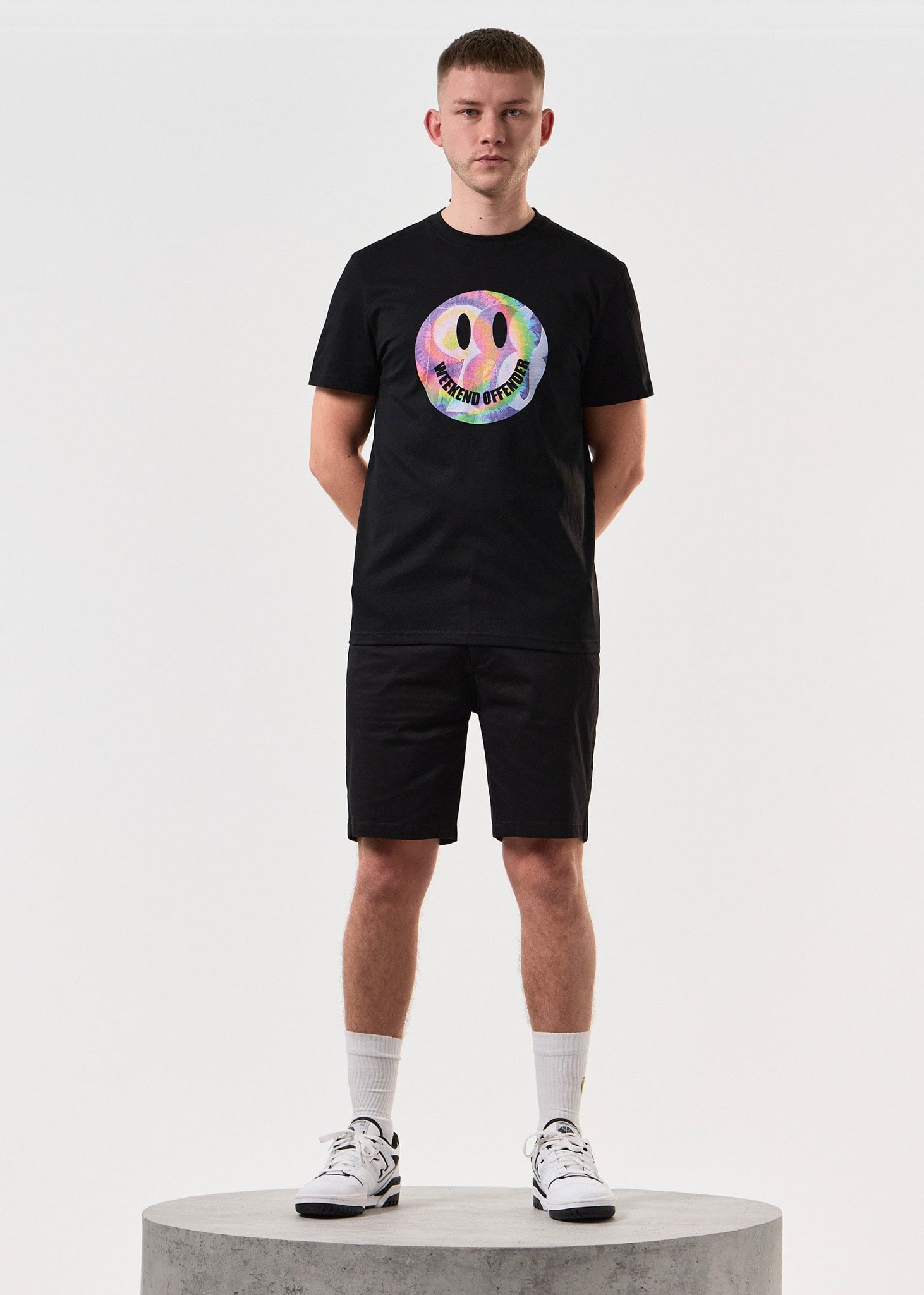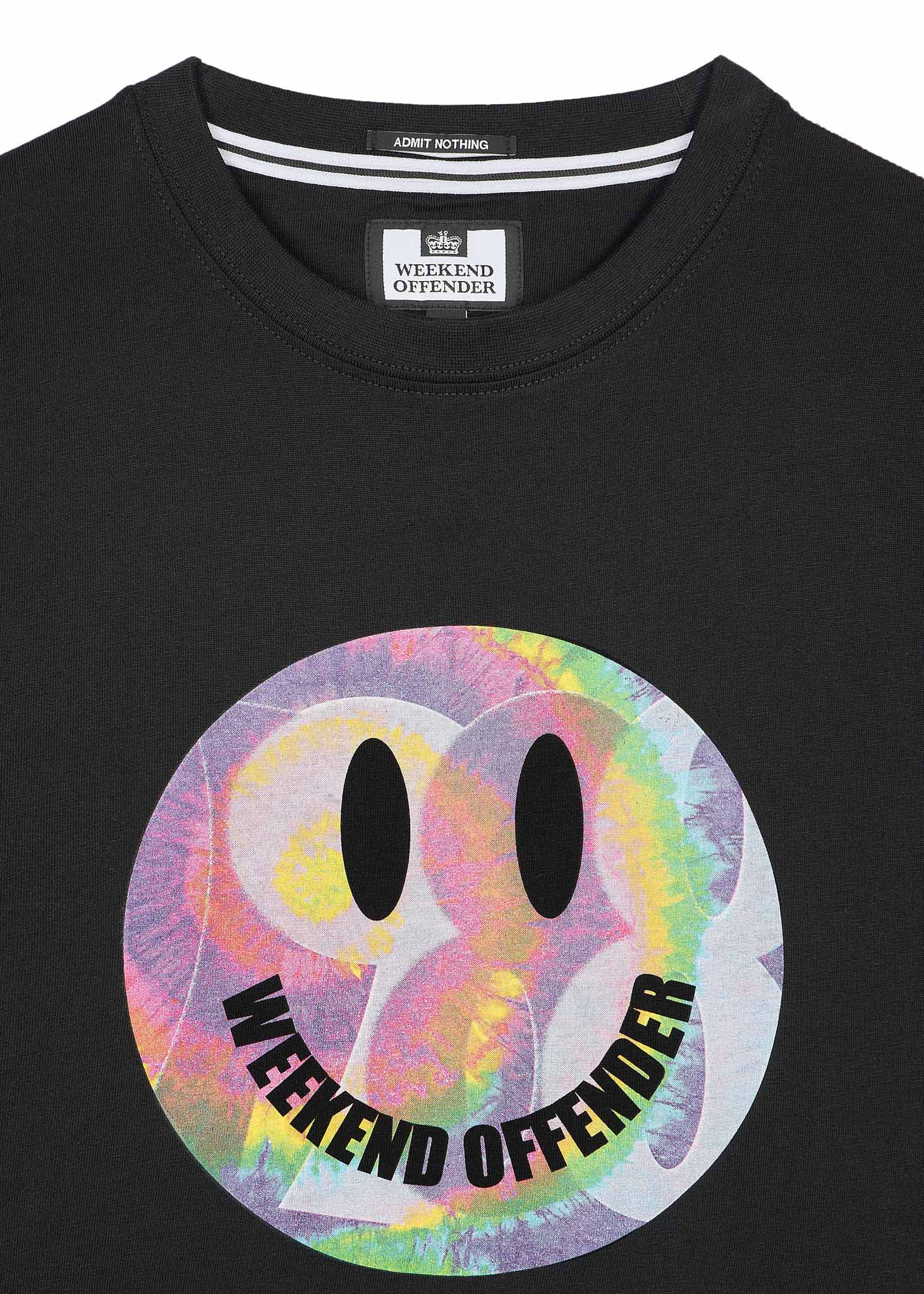 The Weekend Offender Shoom Graphic T-Shirt is a trip down memory lane for fans of '80s acid house culture. This tee features a bold, eye-catching graphic based on the iconic smiley face from that era. Crafted from a comfortable, 100% cotton single jersey knit, the Shoom T-shirt has a relaxed fit and a classic crew neck for all-day wear.