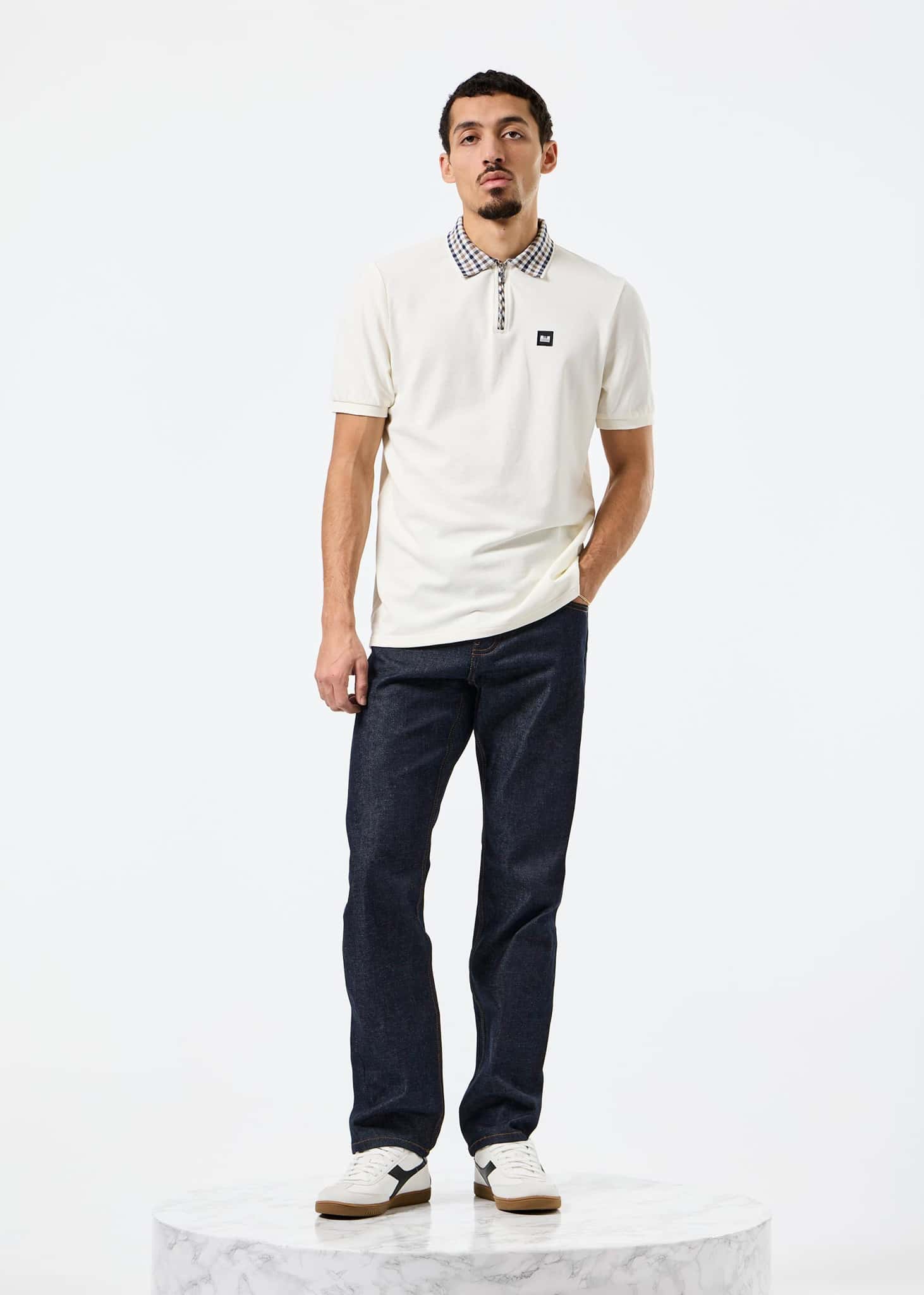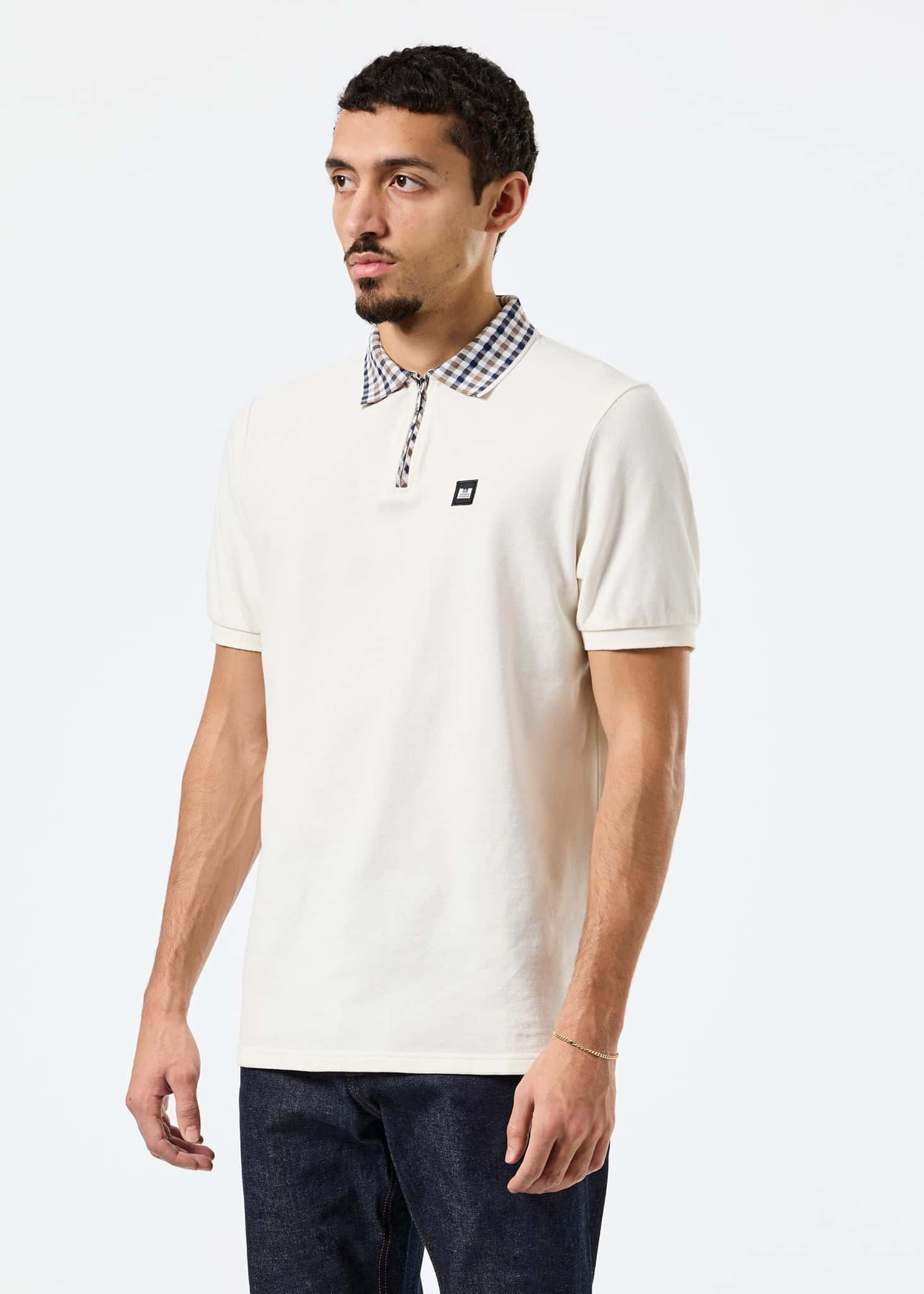 - Signature mid house check jacquard ribbed collar