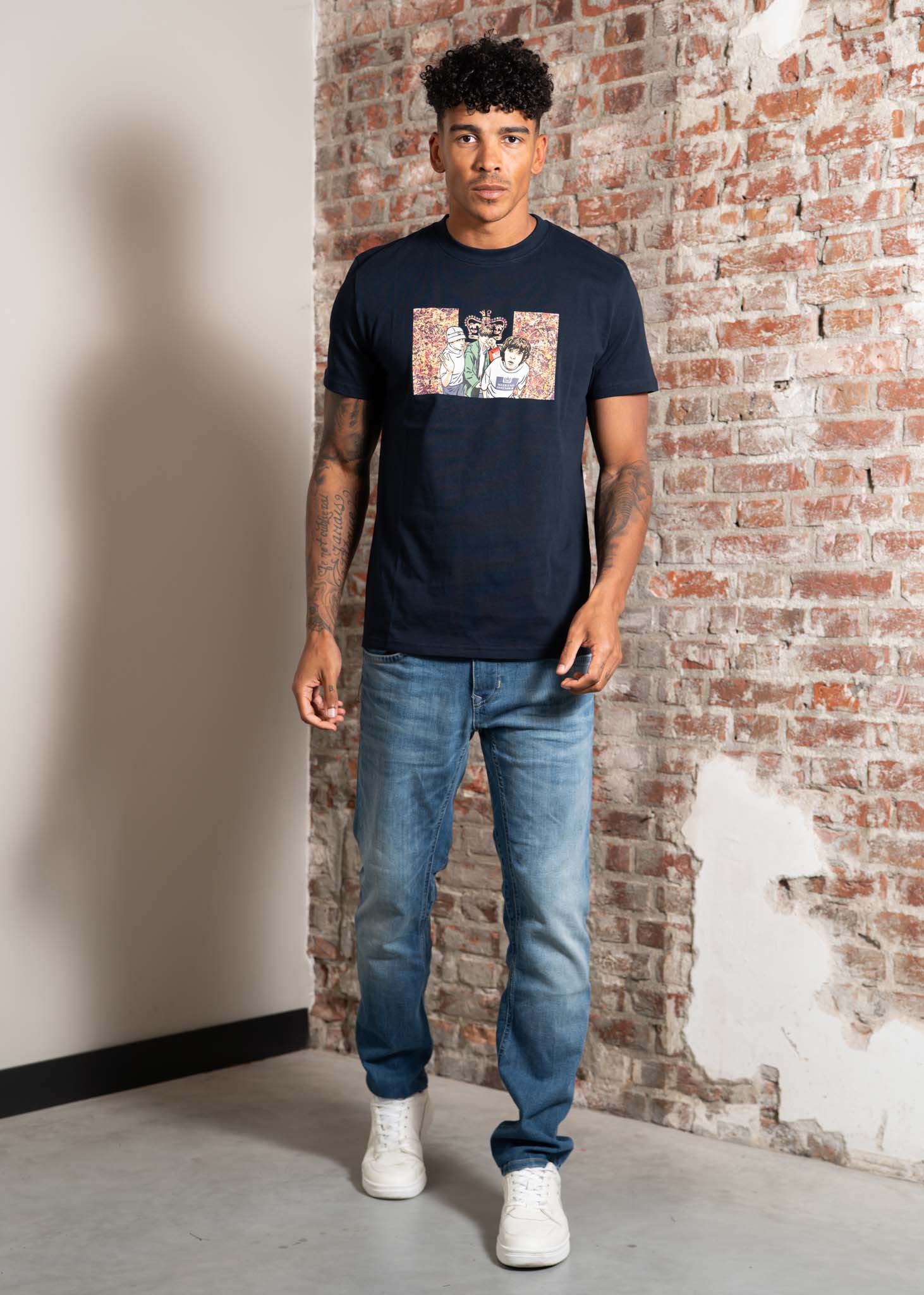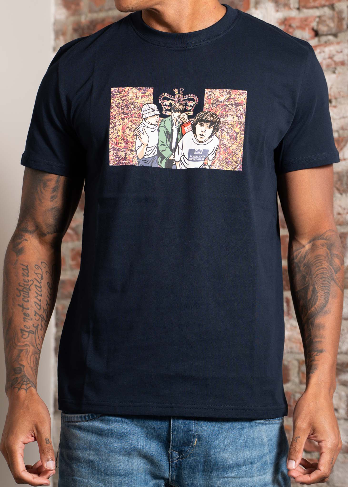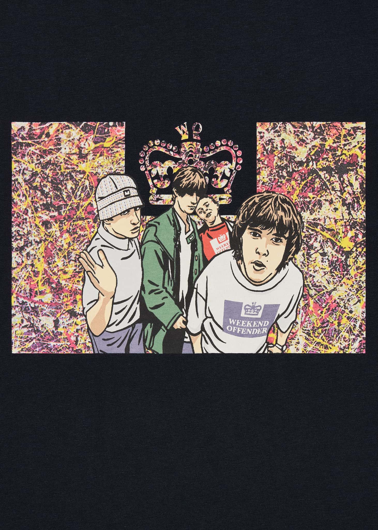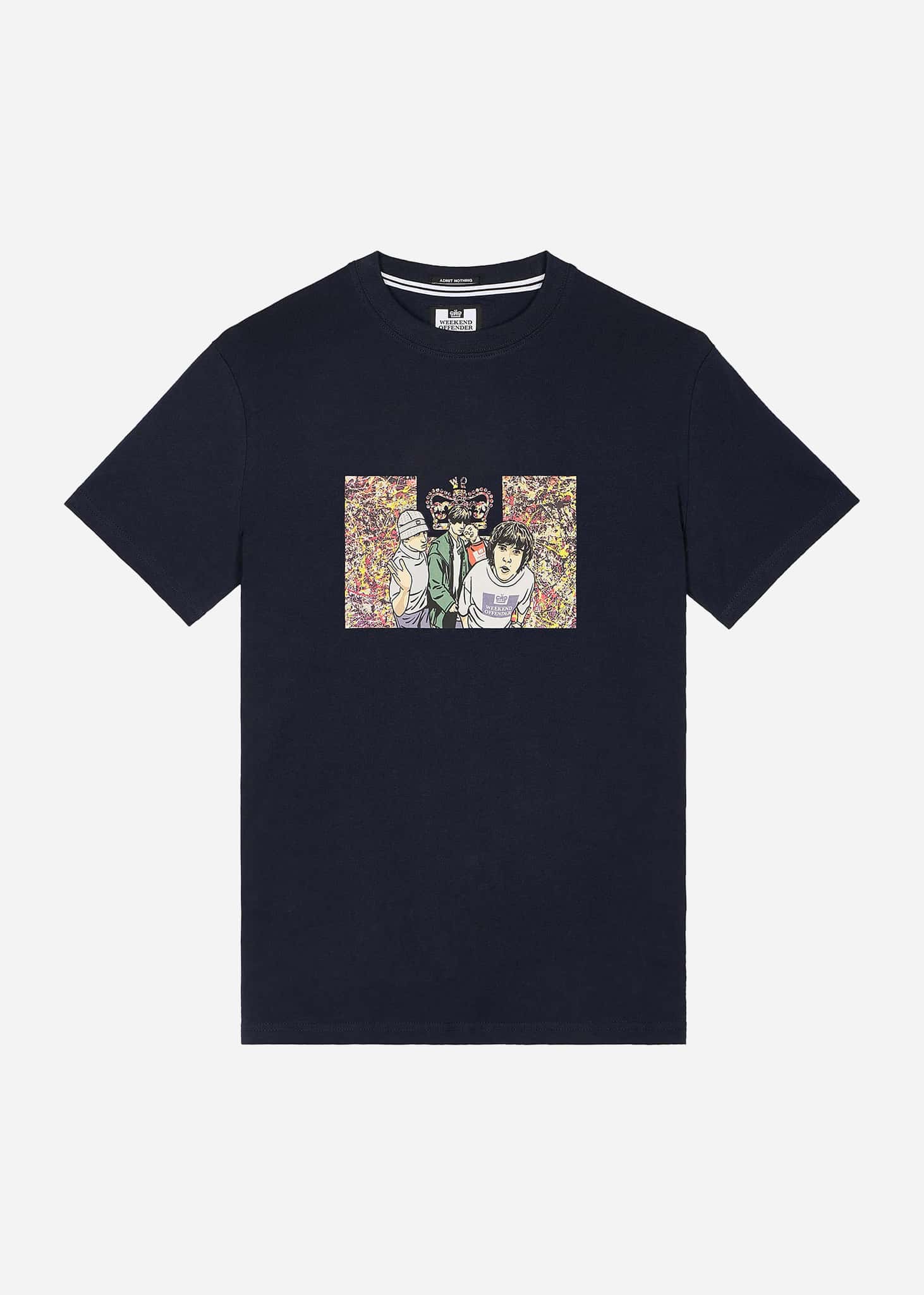 Graphic T-shirt inspired by The Stone Roses, featuring a print on the front that references Jackson Pollock's Number 5 – the inspiration for guitarist John Squire's iconic album covers.
