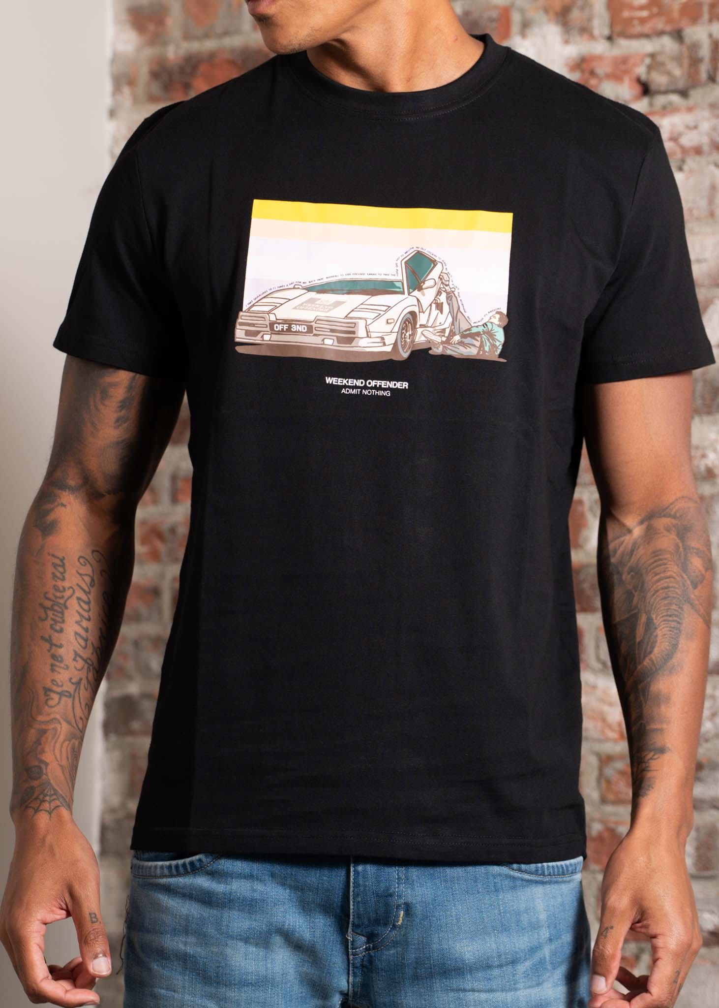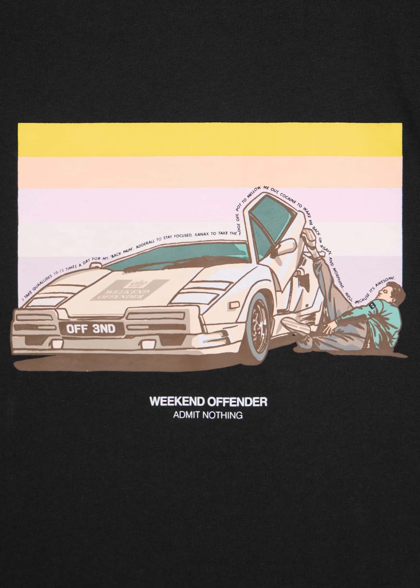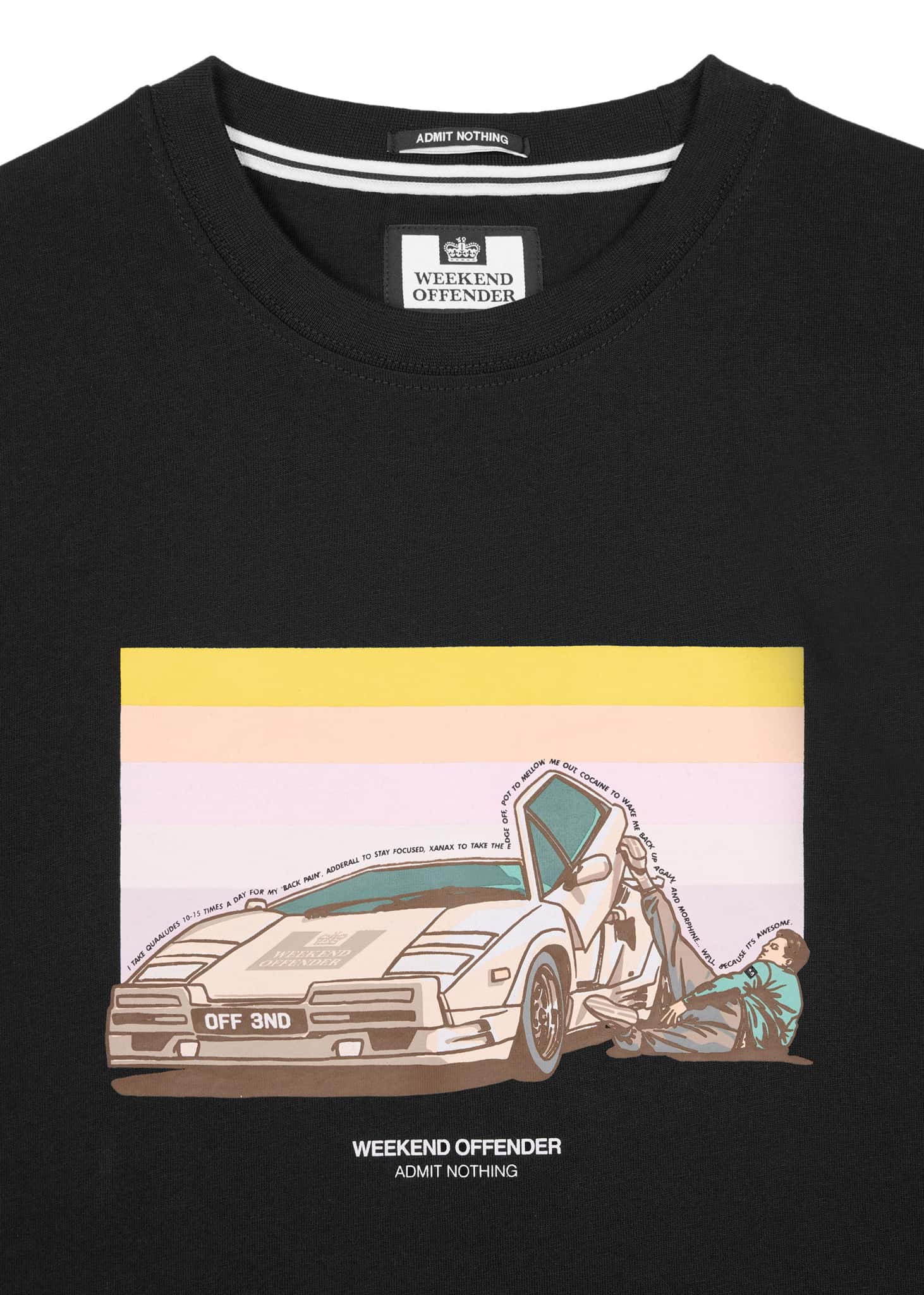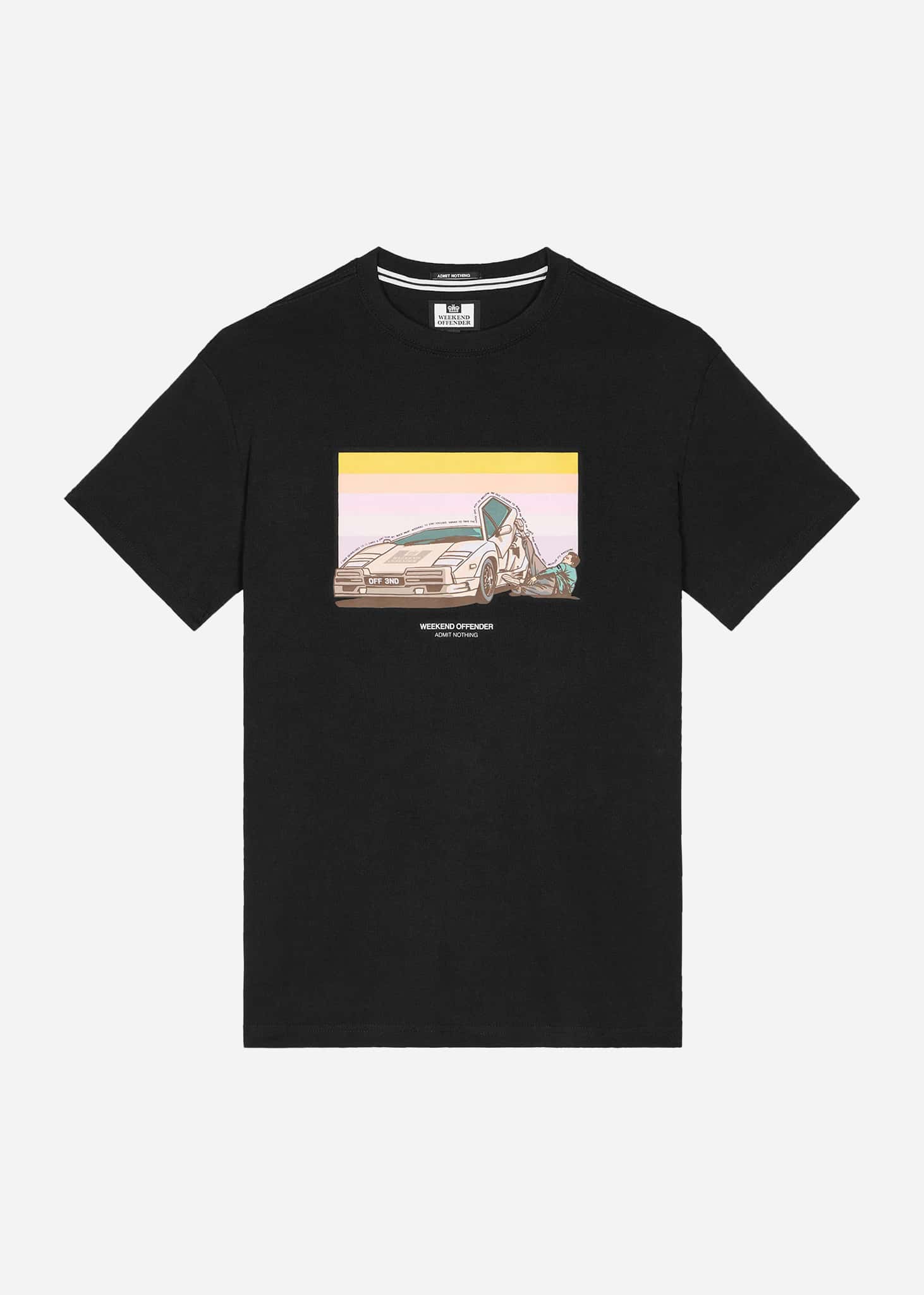 Graphic T-shirt featuring the iconic scene from *The Wolf of Wall Street*, in which Jordan is heavily under the influence of Quaaludes and struggles to drive home.
