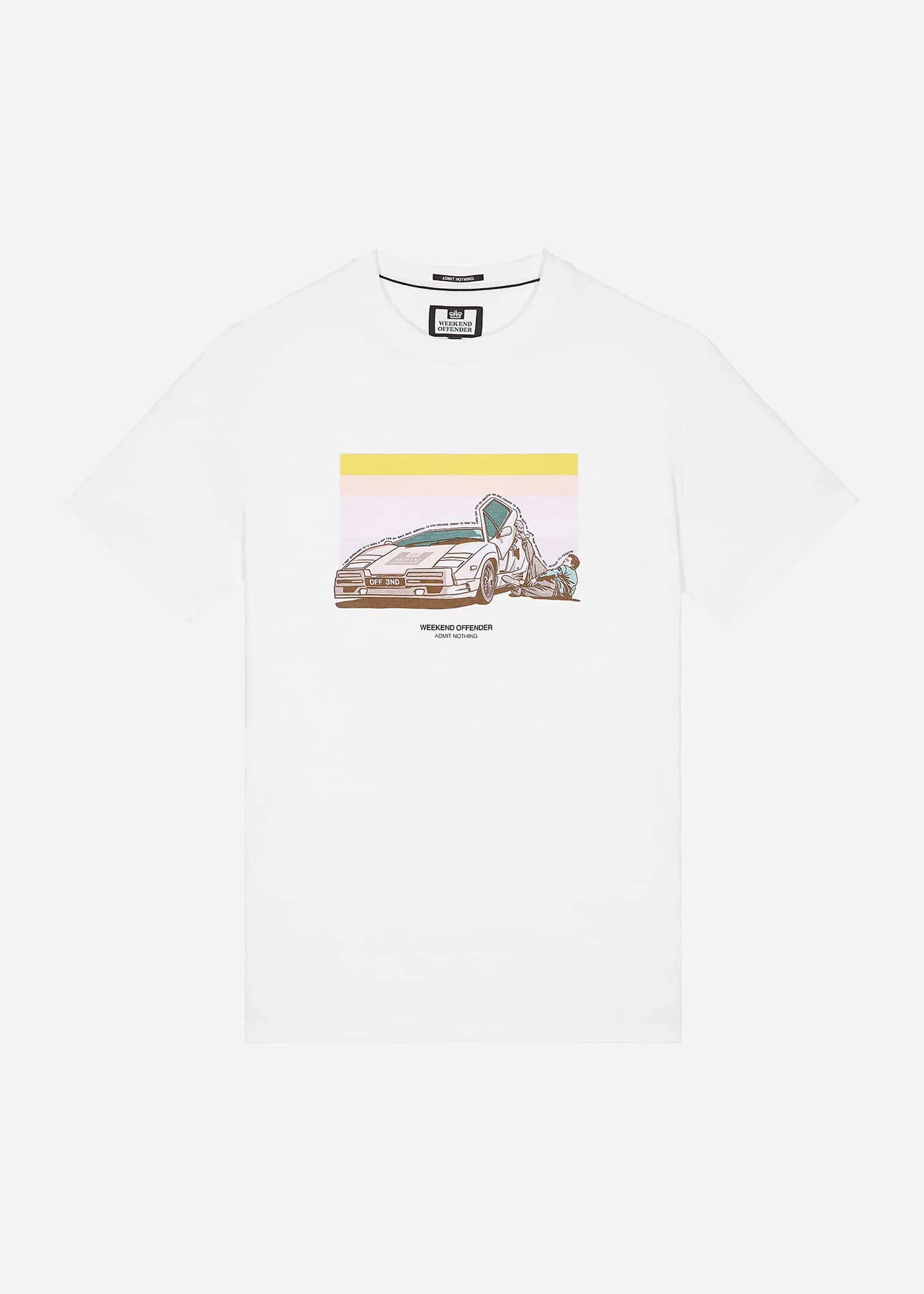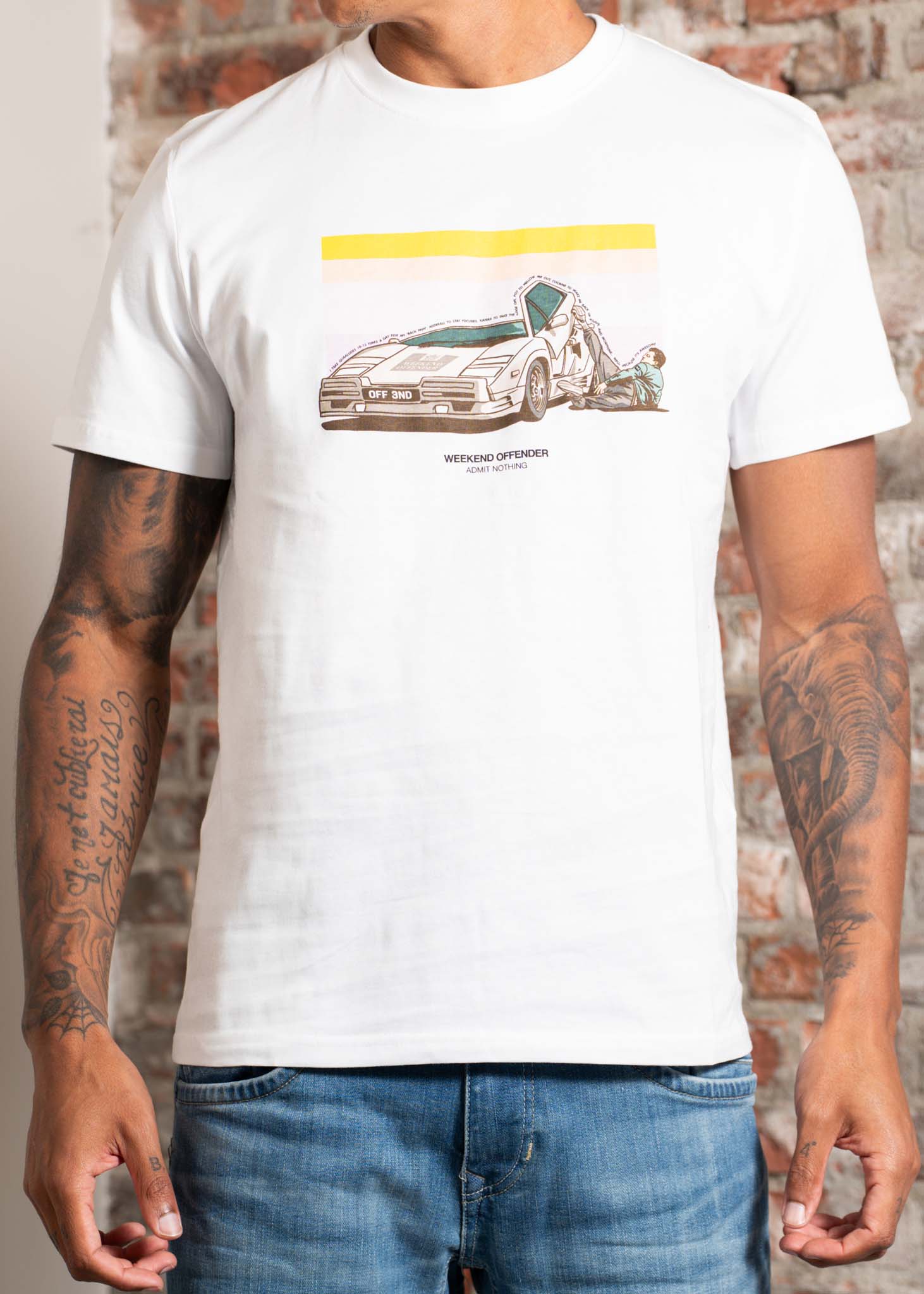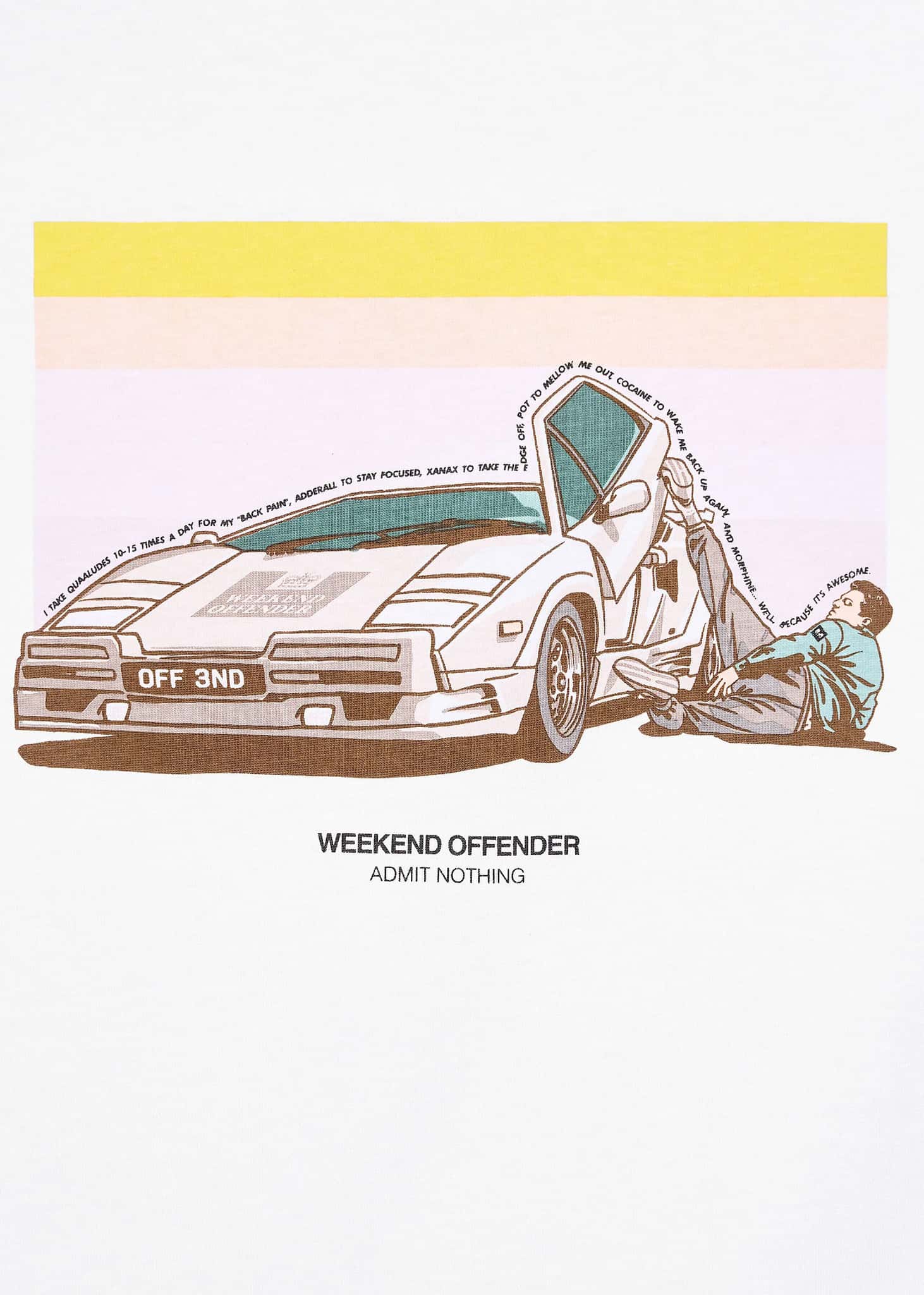 Graphic T-shirt featuring the iconic scene from *The Wolf of Wall Street*, in which Jordan is heavily under the influence of Quaaludes and struggles to drive home.
