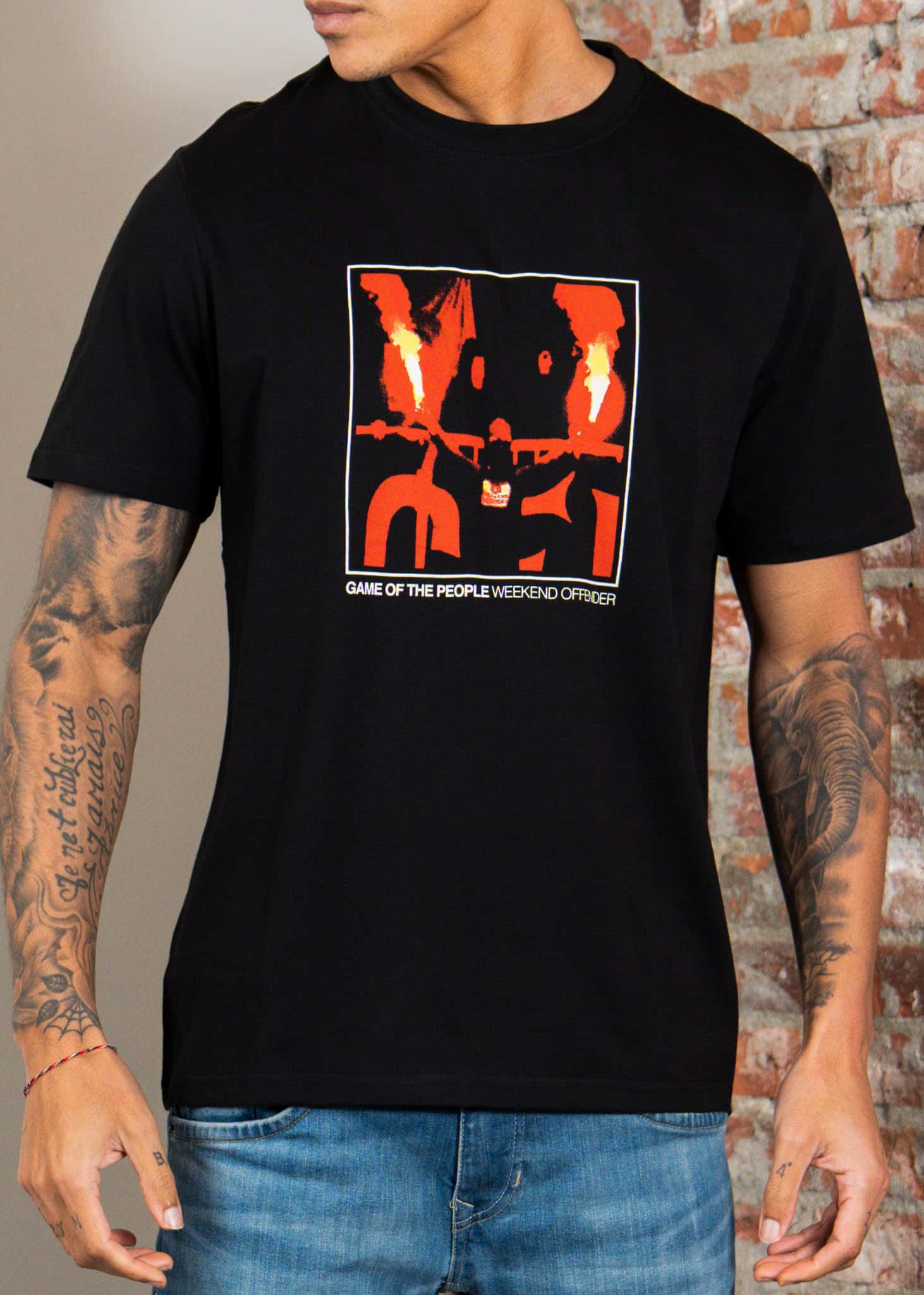 Graphic T shirt van stevig gekamd katoen met duidelijke borstprint. Gemaakt voor dagelijks gebruik met strakke afwerking.